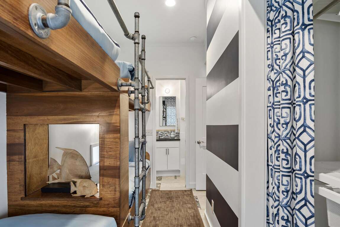 Beach and Boardwalk by Oversee 30A | 2025 Diamond Winner - Best Rental ManagementThis is not your average beach house. Designed by George Israel and just two doors from the sand, Beach and Boardwalk is full of personality, thoughtful details, and an unmistakable wow factor that makes it feel more like an experience than just a place to stay.Highlights: Rosemary Beach! Steps to private beach access Private balcony with scenic Gulf views Stunning interiors and unique architectural details 4 community pools! 4-star dining Boutiques, shops, fun eateriesInside, its stylish but relaxed, filled with curated details, warm textures, and spaces that invite you to kick back and pretend you live here year-round. Theres personality around every corner, from the art to the layout.Gulf views and breezy courtyards? Yes, and yes. The whole place feels like your own private corner of Rosemary Beach. Explore every artistic detail while enjoying modern comforts and effortless beach access, with the town center just a flip-flop stroll away.With Oversee 30A, exceptional service meets unforgettable surroundings. Youll be taken care of by a local team thats around every day, with a 24/7 line if anything unexpected comes up. We make luxury feel laid-back. Just like it should.Overview:- Located two homes from the beach- Private beach access- 4 community pools- Covered porches and stunning Gulf views from private balconies- Unique nautical-inspired interiors- Dining table for 6, bar seating for 3- Fully equipped kitchen w/stainless steel appliances and gas stove- Beach chair and umbrella service (additional fees)- Fitness center (additional fees)- Tennis courts (additional fees)Overnight:FIRST FLOOR- Primary Bedroom: Queen bed, private bath, tub and glass-enclosed shower, private shuttered porch- Guest Bedroom: Queen bed, private bath with shower- Bunk Room: Two twin-over-twin bunks, private bath w/shower (no TV)SECOND FLOOR- Full bath with tub/shower combinationTHIRD FLOOR- Loft with queen bed, two elevated twin beds, TVCheck-in is 4:00 PM CST. Checkout is 10:00 AM CST.