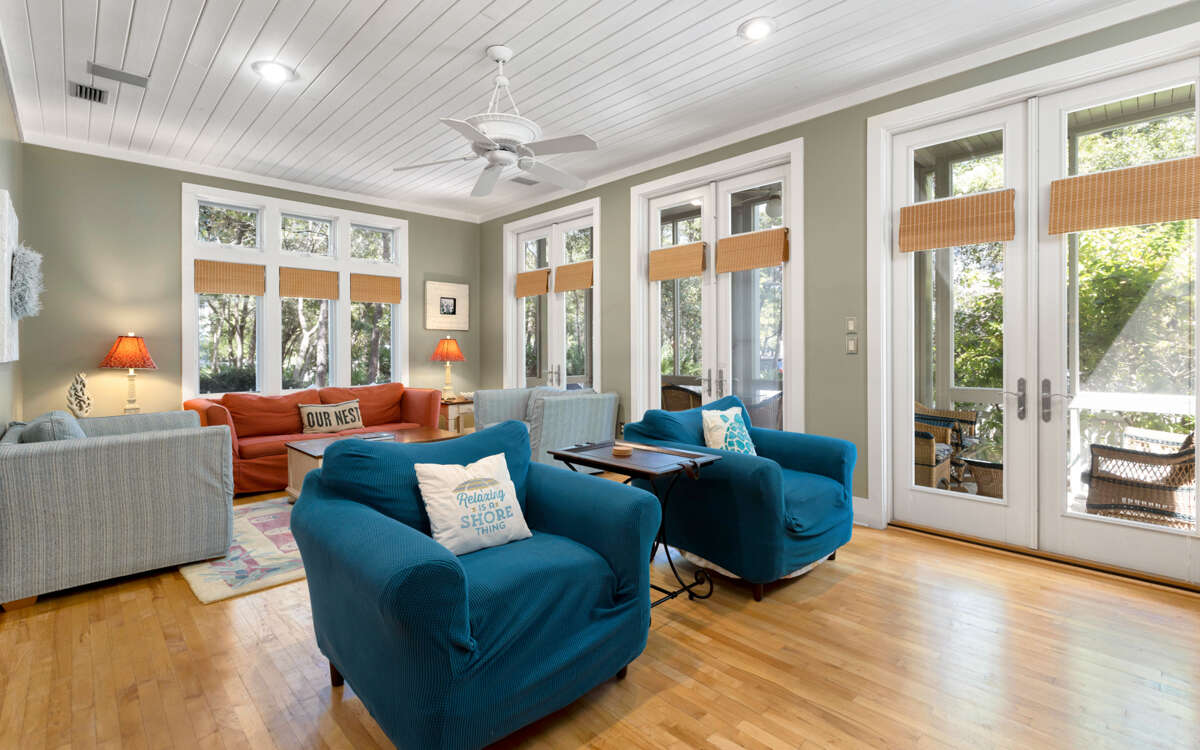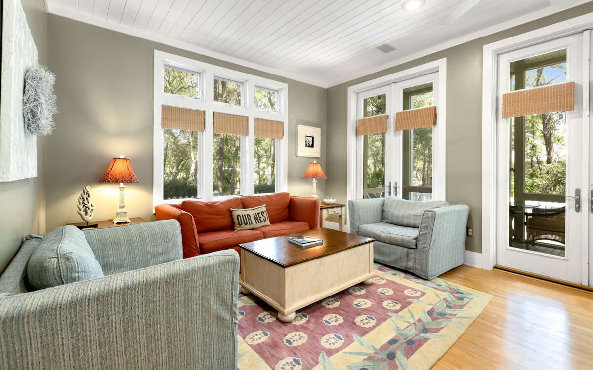 Ingle's Nest by Oversee 30A | 2025 Diamond Winner-Best Rental Mgmt.Highlights: Seaside 422 steps (.2 miles) to West Ruskin Beach Access Fireplace Nice back porch Explore Seaside, WaterColor, and Seagrove 3 bikes! 4-star restaurants Cute shopsFew places are as unmistakable as Seaside and have so profoundly shaped their local landscapes. This 3-bedroom home reflects the relaxed, light-hearted lifestyle with its open floor plan and multiple porches designed to provide ample space for gathering with friends and family. The large gourmet kitchen has double electric ovens and a six-burner cooktop with griddle. Stainless steel appliances complement the custom cabinetry and granite countertops. Lots of cabinet space and a large center island, with bar seating for four, makes it a great gathering spot. The living room includes a gas fireplace flanked by built in bookcases and has access to a screened in porch for outdoor dining or cozying up with a good book. The Upstairs features three bedrooms, all with access out to an open-air covered porch overlooking the wooded green space next door allowing you to feel as if you are nestled in the treetops. The large master bedroom with vaulted ceilings also includes a sitting area with wet bar as well as a private porch for relaxing with early morning coffee. The master bathroom features not only a large jetted tub but also an oversized shower.We are excited to have you stay with us! Oversee Rentals is a small locally owned company comprised of hard-working professionals passionate about providing a clean home and consistent experience for our guests. Our local office is located within 10 miles of this home. We are open seven days a week and operate a 24/7 emergency line. If you need anything during your stay, please let us know. We are right down the street and are happy to head your way!Overview:*422 steps (.2 miles) to the beach (West Ruskin Access)*3 bedrooms, 3 baths*2272 sq ft*gas grill*Wi-Fi*3 bikes included*parking limited to 2 vehiclesOvernight:- king bed in 2nd floor guest room; shared bath; shared balcony; TV (19)- king bed in 2nd floor master; walk-in shower; large jetted tub; private balcony and shared balcony; TV (26)- two twin beds 2nd floor guest room; shared bath; shared balcony; TV (24)- queen sleeper sofa 1st floor guest room; shared hall bath; TVDetails:*check-in is at 4:00 PM CST and checkout is at 10:00 AM CST