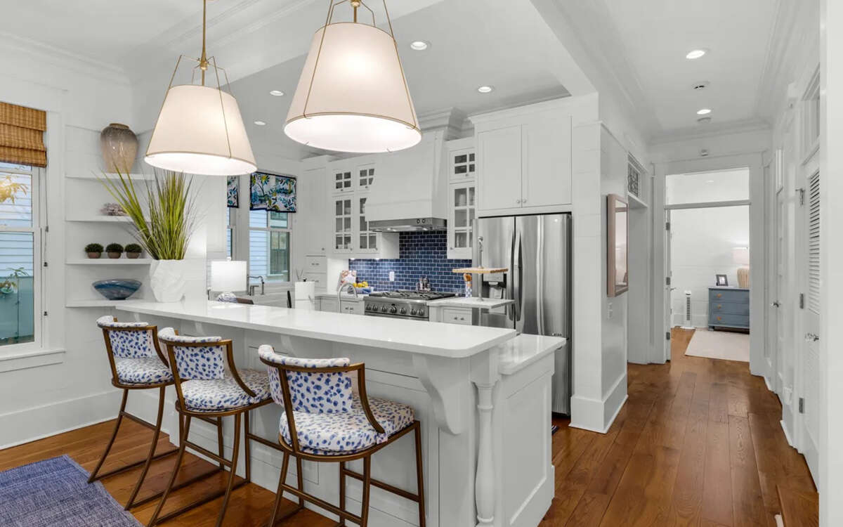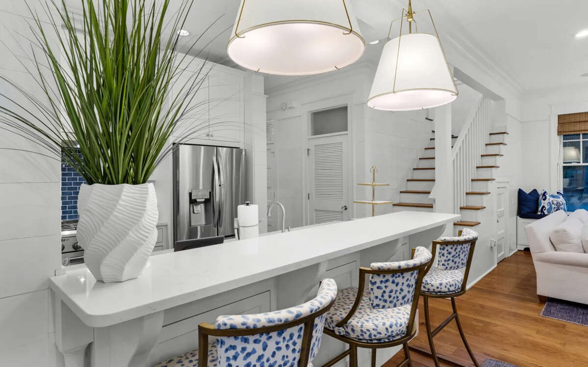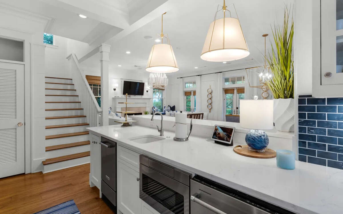 Pelican and Palm by Oversee 30A | Perfect in Walton County Awards Three-Time Diamond Winner Best Rental Mgmt. 2026, 2025, 2024Pelican and Palm is easy coastal living with just the right amount of polish. Tucked along a quiet, tree-shaded street, this charming two-story home welcomes you with a welcoming front porch, made for slow coffees, sunset cocktails, and doing absolutely nothing on purpose.Highlights: Camp WaterColor district! 1.3 miles to private Beach Club beach access Access to five resort-style pools, seasonally heated! Golf cart! 6 Bikes! 6 bedrooms, 5 full baths, 2 half baths Gas grill Main house + Carriage houseWhen its time to play, youre just minutes from WaterColors amazing resort-style pools, a palm-lined deck, and that perfect stretch of white sand and turquoise water. Hop on one of six bikes!Inside, light-filled spaces feel relaxed and put-together, warm wood floors, coastal-blue accents, plush seating, and a cozy fireplace for low-key nights in. The bright, modern kitchen (white cabinetry, stainless appliances, quartz/marble counters, garden windows) is made for real beach meals, whether youre gathering at the island or lingering around the dining table.Bedrooms are calm, comfortable, and beautifully layered with crisp linens, soft textures, and leafy views. Bathrooms keep things spa-like with marble vanities, glass showers, and a soaking tub that earns its keep after a long beach day. A sunny upstairs hallway, cheerful laundry room, and cozy writing nook add thoughtful, livable touches throughout.Pelican and Palm is the kind of place that feels like home, if your home just happens to be in WaterColor!Oversee 30A: clean, comfy stays with a local team nearby, seven days a week. Enjoy your stay!Overview:- 1.3 miles to the beach (Beach Club private access)- 1.7 miles to Seaside- Access to five WaterColor resort-style pools- 6 bedrooms, 5 full baths, 2 half baths- Complimentary golf cart- 6 complimentary bikes- Separate carriage house with kitchenette- Two laundry rooms (main & carriage)- Two dishwashers- Gas grill- Wi-FiOvernight:FIRST FLOOR- Primary Bedroom: King bed w/ private bath- Half BathroomSECOND FLOOR- Guest Room: King bed, private bathroom- Guest Room: King bed, private bathroom- Guest Room: King bed, private bathroom- Bunkroom: twin/twin bunks, attached half bathroomCARRIAGE HOUSE- Guest Room: King bed, private bathroomCheck-in is 4:00 PM CST. Checkout is 10:00 AM CST.