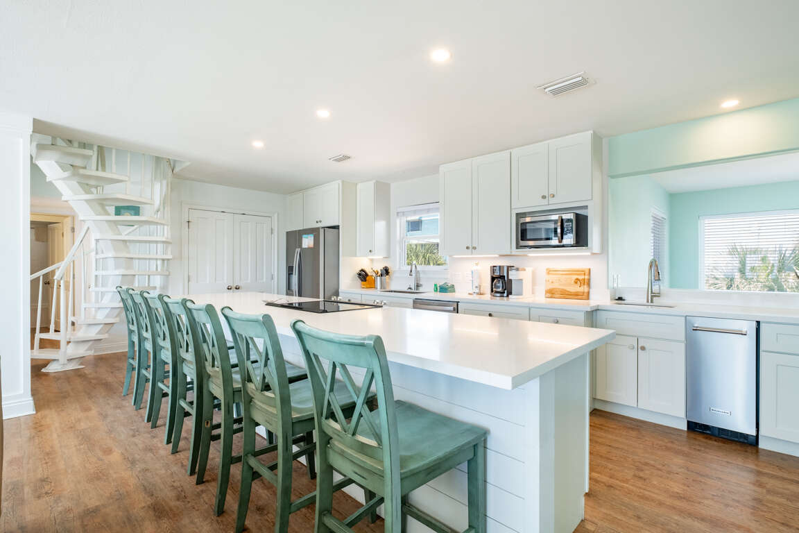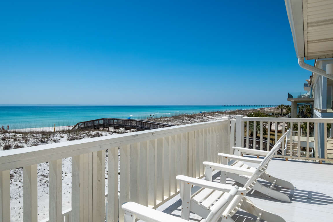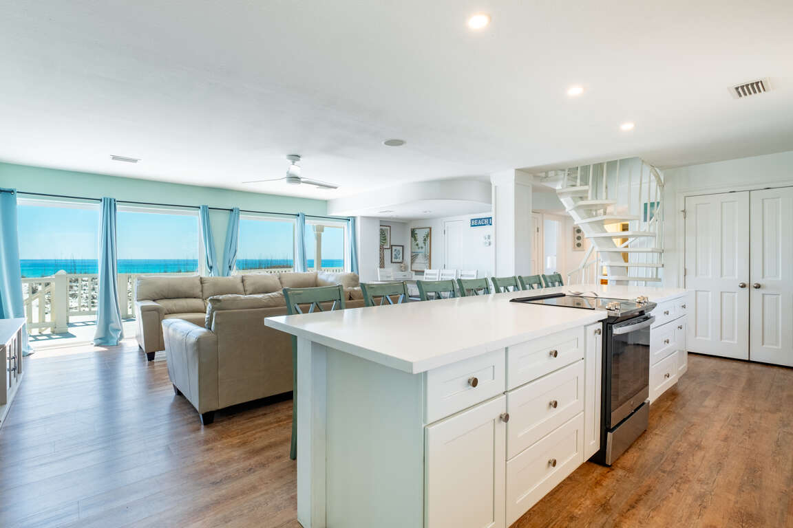 The spacious 6-bedroom house in Pensacola Beach offers a newly updated and ideal space for family vacations or intimate weddings, boasting a range of features including a galley style kitchen with stainless steel appliances, an upper level deck with stunning views, and direct access to the sugar white sands below. The property has undergone extensive renovations, ensuring a modern and comfortable stay for guests. The benefits of staying in a beachfront property such as this are unparalleled. Guests can enjoy the convenience of stepping out directly onto the pristine beach, relishing the breathtaking ocean views and the soothing sound of the waves. The updates and improvements to the property elevate the beachfront experience, providing a tranquil and luxurious setting for unforgettable vacations and celebrations.