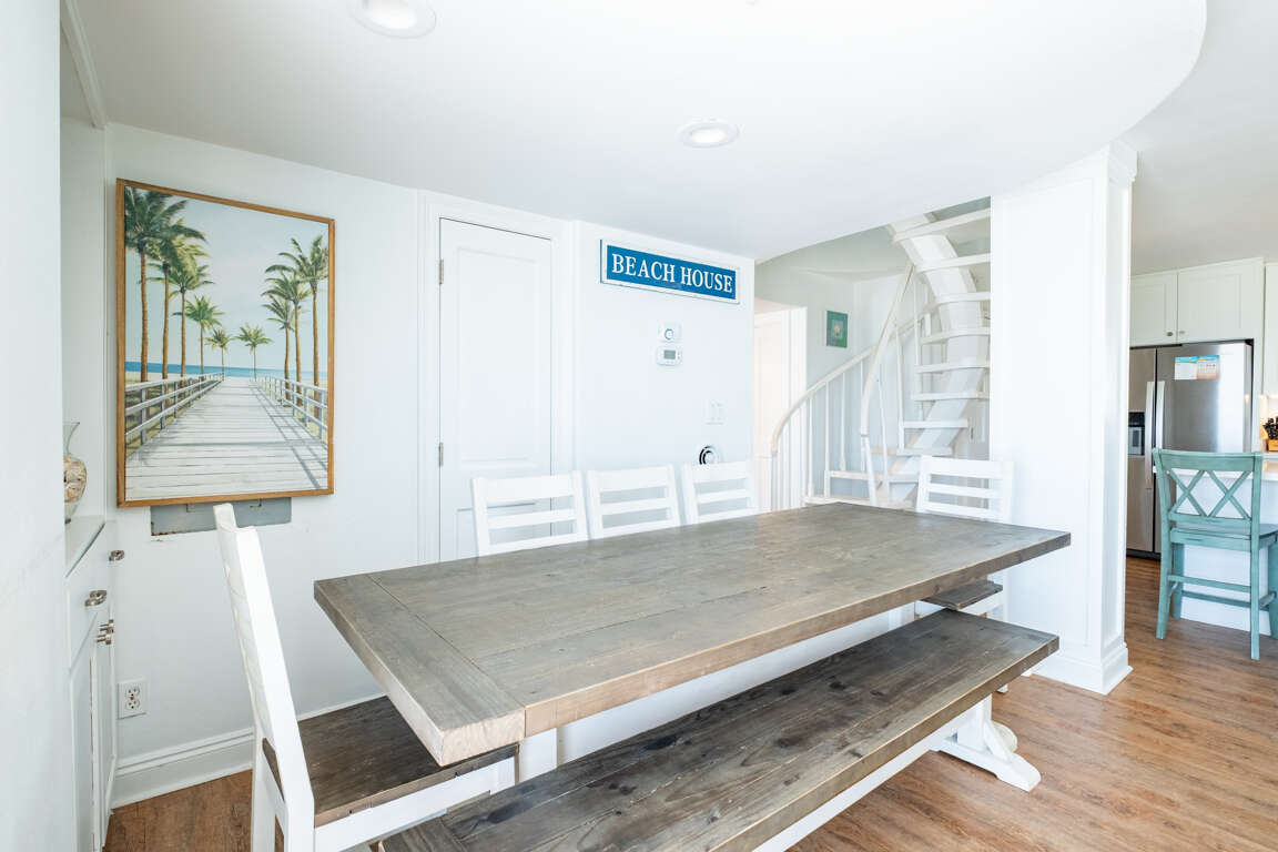 Featuring a well-planned arrangement of bedrooms, this spacious 6-bedroom house in Pensacola Beach offers comfortable and versatile accommodations for up to 19 guests, ensuring a restful and enjoyable stay for all. The bedroom layout boasts a lower level bedroom with a queen bed and sleeper sofa, a main level master bedroom with a king bed and private bath, and two additional bedrooms on the main level, one with a king bed and one with a queen bed. Additionally, two separate bedrooms accessed by a unique spiral staircase provide added privacy. The upper level presents bedrooms with a king bed, queen sleeper sofa, and bunk beds, offering flexible sleeping arrangements for larger groups. Overall, the room arrangement caters to various preferences and ensures a peaceful and rejuvenating stay for all guests.