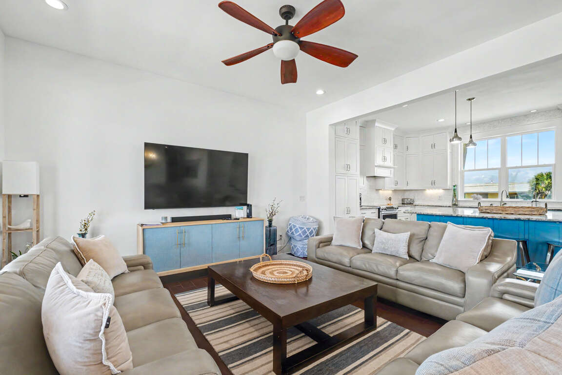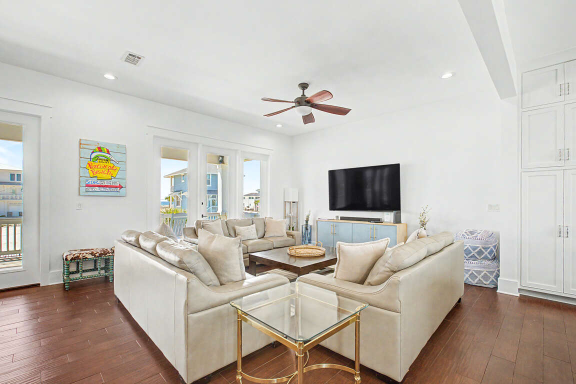 The home has one king master with its own private bath, three queen guest rooms, where two of them share a hall bath and two of them share a Jack-and-Jill bath, and there are also two additional rooms with double over double bunk beds and a single trundle. The living area has three-sofas for plenty of seating one of which is a sleeper sofa with memory foam mattress.