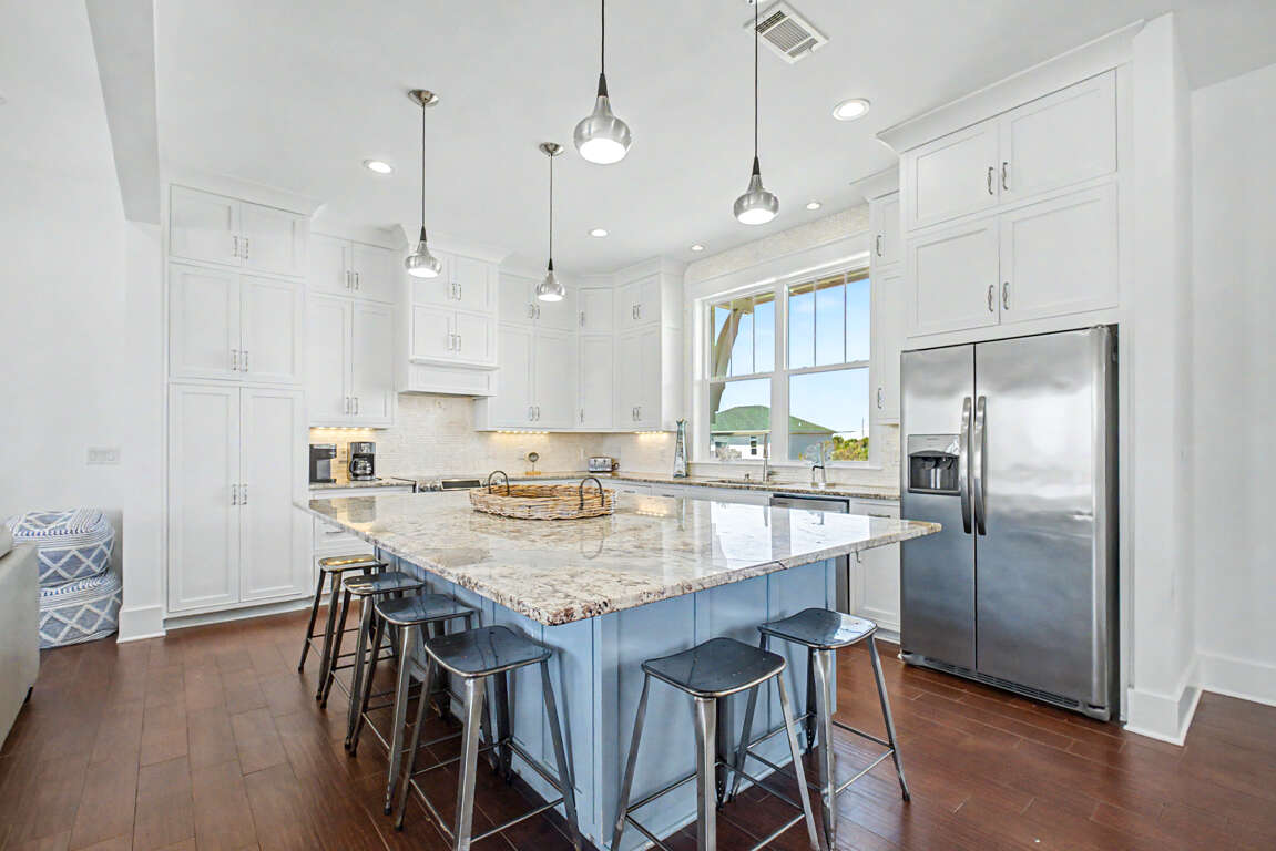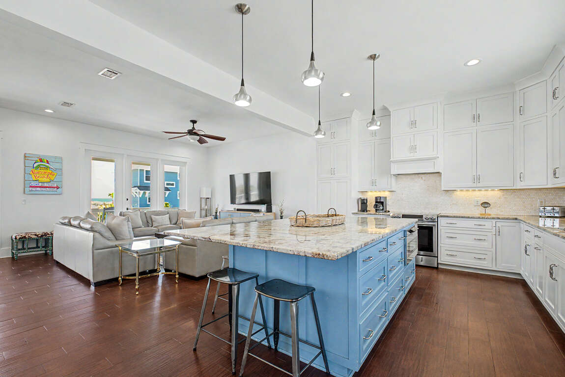 Weddings are also welcome and the house is finished out to an extremely high standard (the kitchen is INCREDIBLE!) with 6-bedrooms, 3.5-bath, two massive decks overlooking the Gulf and the house sleeps 18 overall!