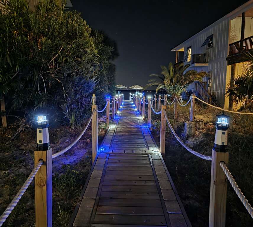 Enjoy sunsets in your own back yard. This home has amazing gulf and sound views and the easement to the gulf is right out front. Its a 5 minute walk or bike ride to dining and shopping. There is also a propane grill on the back deck for your enjoyment! Balconies abound – when you approach Aquamarine Bliss you will immediately find expansive balconies on both the front and rear of the home. Delight in watching the dolphins play in the sound which is a frequent occurrence spotted by many of our guests. You can also experience the incredible speed and power of the Blue Angels as they fly by on practice days. Plenty of guests also enjoy parasailing which is also a fun water sport to watch from the balconies of Aquamarine Bliss.