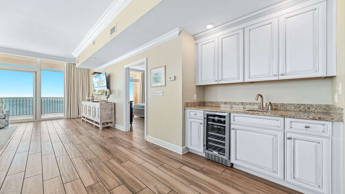 Amenities are abundant at this Phoenix Gulf Shores condo: the unit is appointed with full-size appliances, wet bar with ice maker, 65” flat screen HDTV in living room and a flat screen 55" HDTVs in the master and 2nd bedroom and 43" HDTVs in the 3rd and 4th bedrooms, laundry room with full size washer and dryer. There is a King bed in the Master, a King in the 2nd bedroom, two Queen Beds in the 3rd bedroom and two Queen sized beds in the 4th bedroom, there is also a sleeper sofa in the living room.