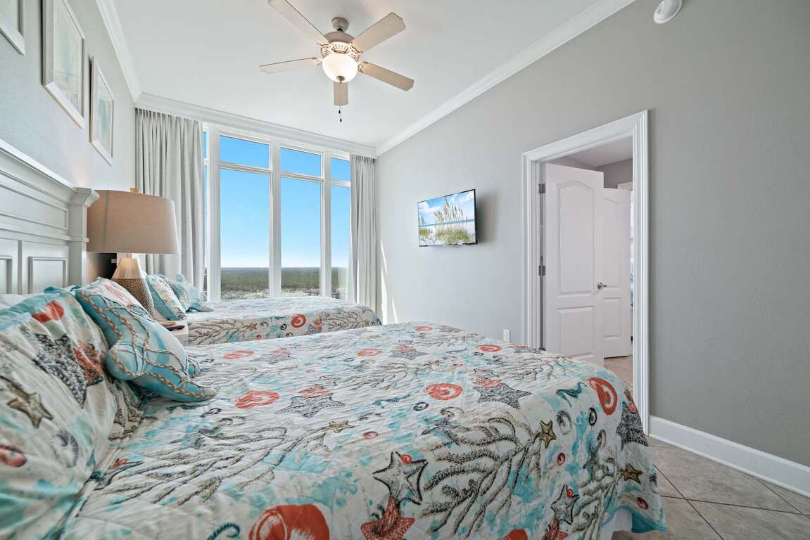 Amenities are abundant at this Phoenix Orange Beach condo: the unit is appointed with full-size appliances, wet bar with ice maker, 65” flat screen HDTV in living room, 55” in the master and 43" Smart TVs in the 2nd, 3rd and 4th bedrooms, laundry room with full size washer and dryer. There is a King bed in the Master and 2nd bedroom and two Queen beds in the 3rd and 4th bedrooms plus a sleeper sofa in the living room for sleeping up to 14.