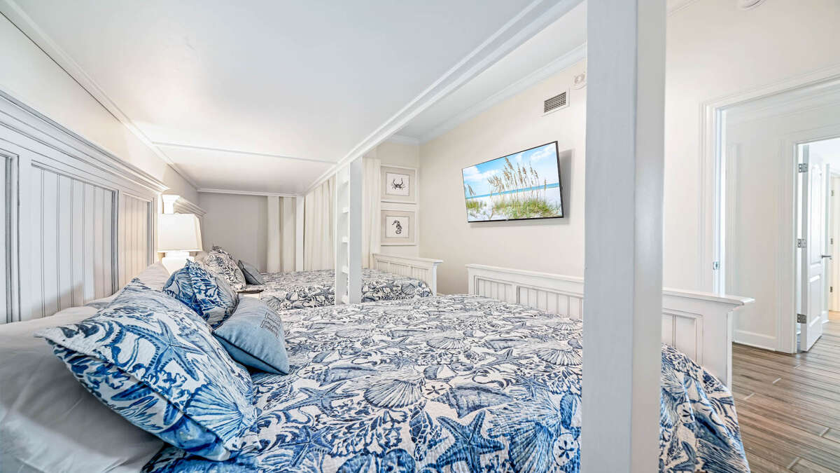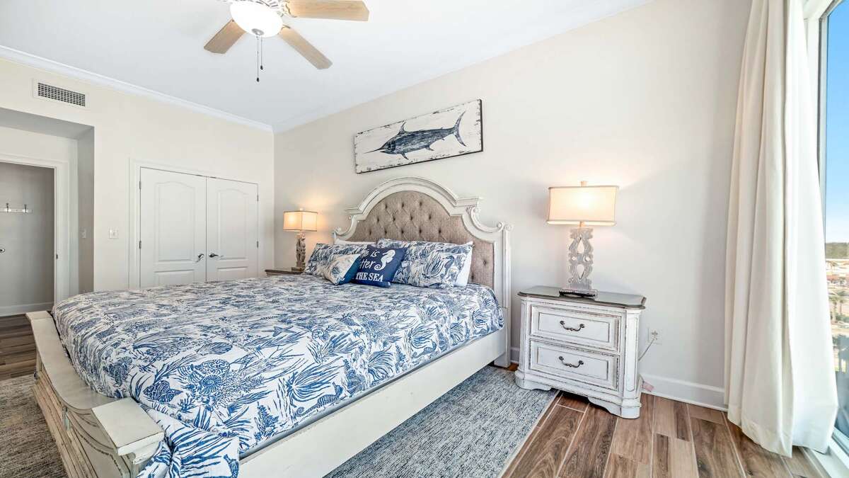 Amenities are abundant at this Phoenix Orange Beach condo: the unit is appointed with full-size appliances, wet bar with ice maker, 65” flat screen Smart TV in living room and a flat screen 60" Smart TVs in the master, 2nd and 3rd bedrooms and a 55" Smart TV in 4th bedroom, laundry room with full size washer and dryer. There is a King bed in the Master, a King in the 2nd bedroom, two Queen beds and two just installed twin sized loft beds in the 3rd bedroom, two Queen beds in the 4th bedroom along with a sofa sleeper in the living room for sleeping up to 16.