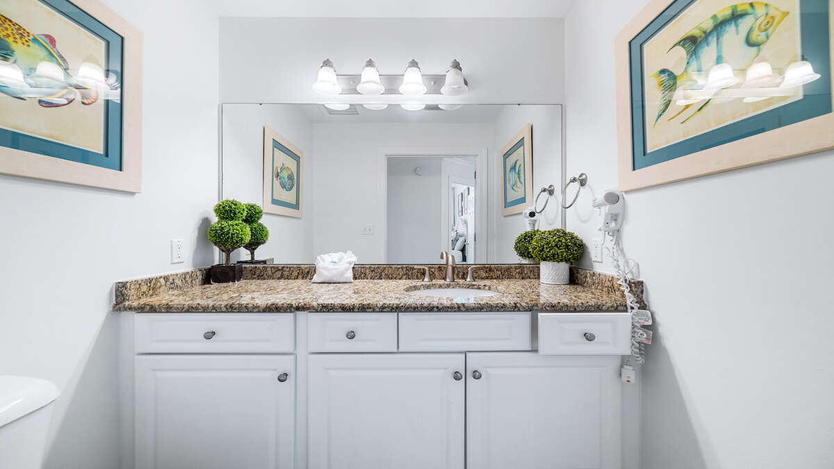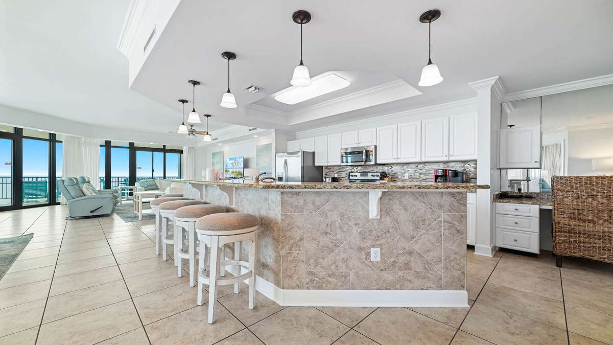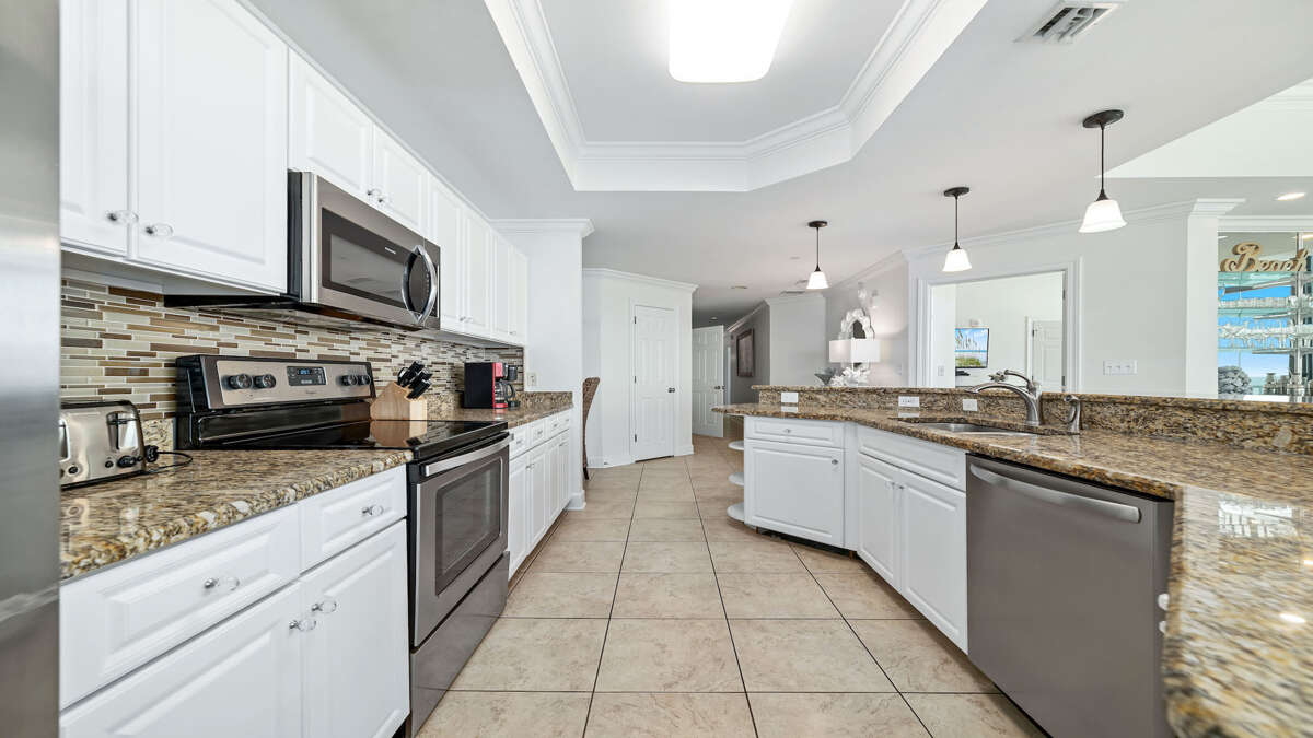 The unit is professional decorated with full-size stainless steel appliances, custom cabinetry, granite counter tops, wet bar with ice maker, 70” flat screen HDTV in living room with 50'' flat panel TVs in the bedrooms, laundry room with full size washer and dryer. There is a king sized bed in three of the bedrooms and two queens in the fourth!!! There is also 2 sleeper sofa Queens in the living room and four twin rollaway beds should you need more space to sleep 17 total.