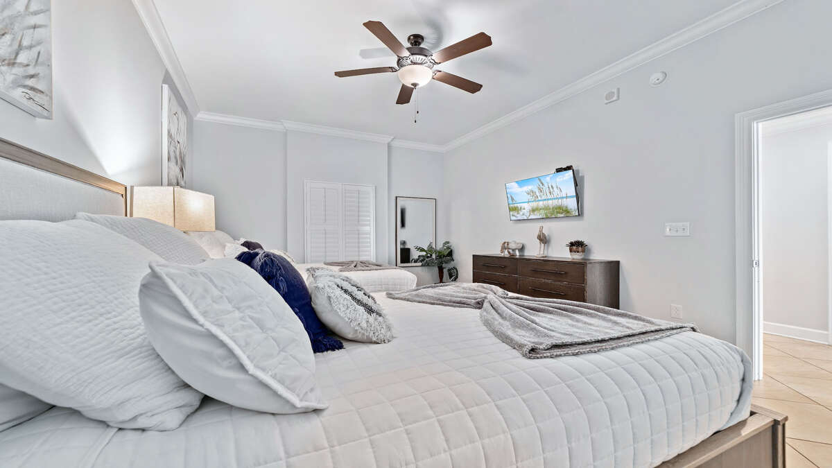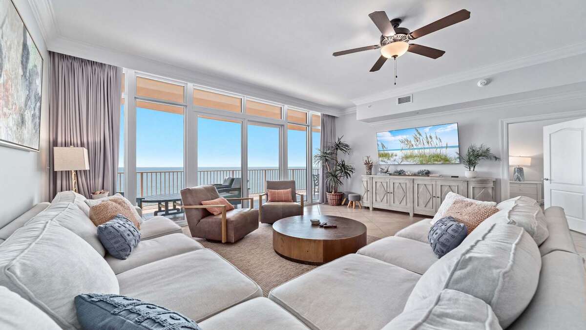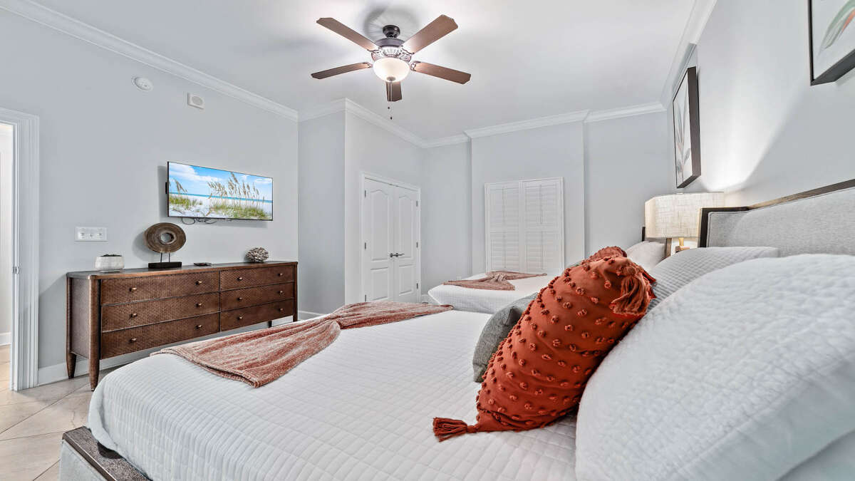 Amenities are abundant at this Phoenix Orange Beach II condo: the unit is appointed with full-size appliances, wet bar with ice maker, 70” flat screen SMART TV in living room and a flat screen 50" SMART TV in the master, and a 43" Smart TV in the 2nd and 3rd bedrooms, laundry room with full size washer and dryer. There is a King bed in the Master and two Queen beds in both the 2nd and 3rd bedrooms for sleeping up to 10.