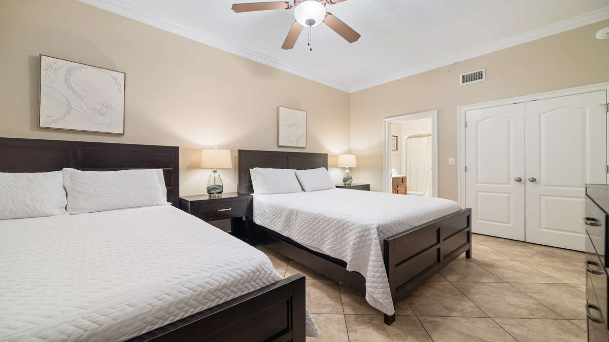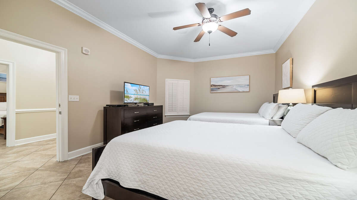 The condo's master and 2nd bedrooms have a new king bed, the 3rd bedroom has two queens, and the living room has two queen sleeper sofas for sleeping up to 12.
