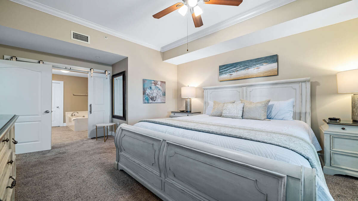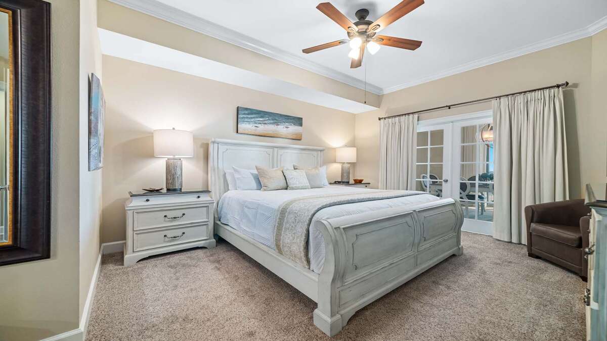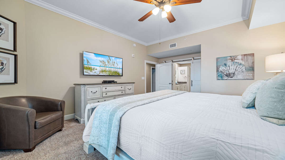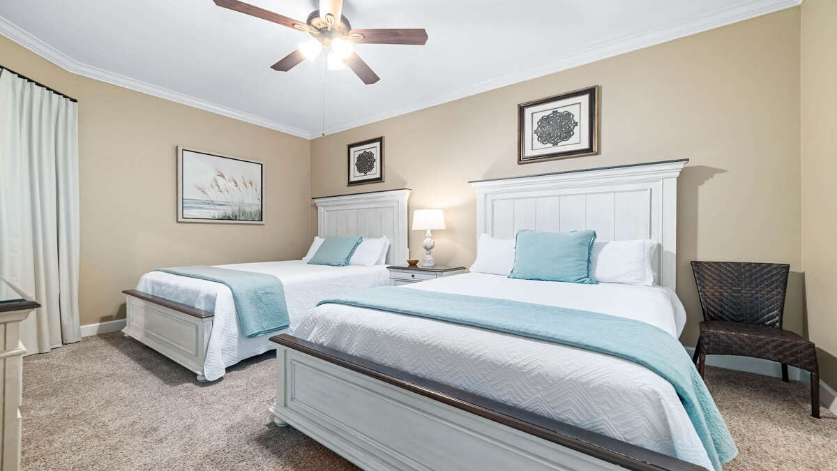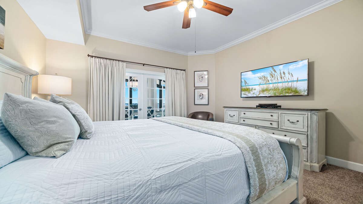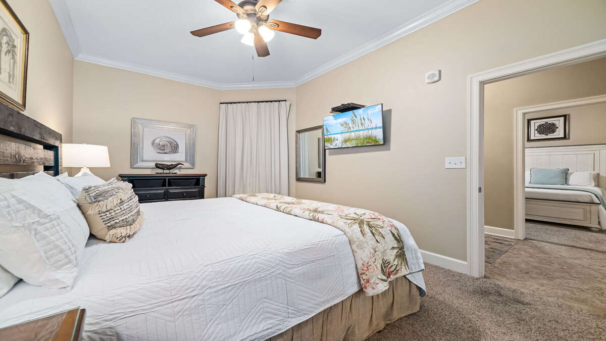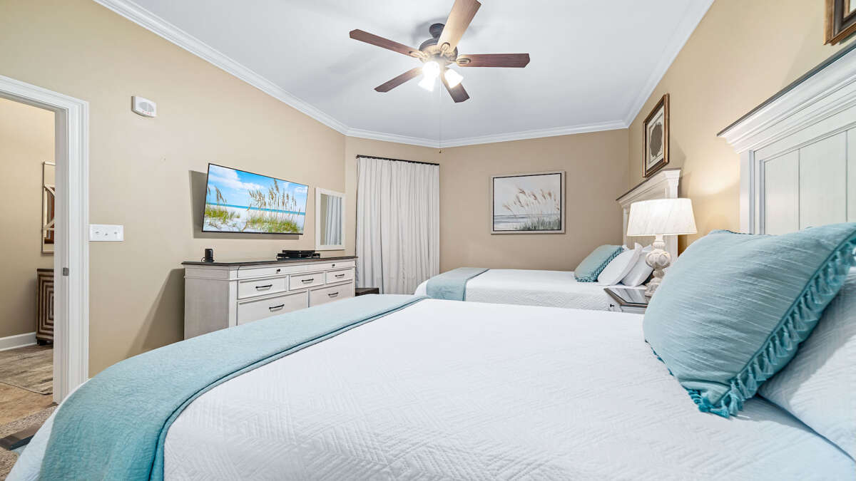 The condo's primary bedroom has a king bed, the 2nd bedroom has two queens, and the 3rd bedroom has a king bed. There is also a sofa sleeper in the living area providing sleeping accommodations for 10.