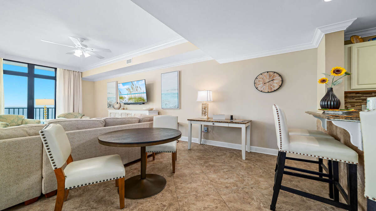 Upon entering you can't help but let out a sigh and let your worries go as you relax in this 2000 sq ft condo. The beach facing living room has floor to ceiling windows and breath-taking views. Updated stainless steel appliances and granite counter tops in the kitchen and all bathrooms, a wet-bar and icemaker are just a few of the high-end touches. The large balcony with great Polywood furniture has unbelievable views of the waves and beach.
