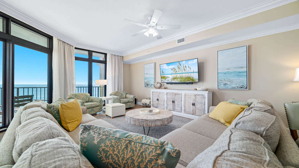 Relax and enjoy your stay in this beautifully appointed, recently redecorated and refreshed three bedroom, four bath condo. No expense was spared when decorating this condo. In the living room, watch movies and sports on the new 77โ OLED SMART TV with sound bar, or listen to any of the 70 Sirius XM channels included. The Primary bedroom has a 65'' SMART TV. There is a 55'' SMART TV in the 2nd bedroom and a 50โ SMART TV in the 3rd bedroom.