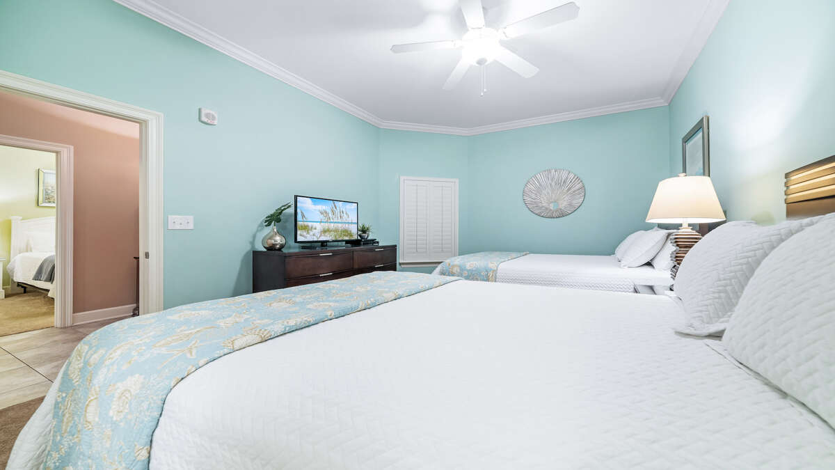 The condo's master and 2nd bedrooms have a new king bed, the 3rd bedroom has two queens, and the living room has a queen sleeper sofas for sleeping up to 10.
