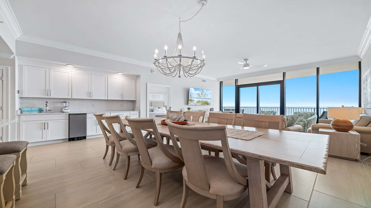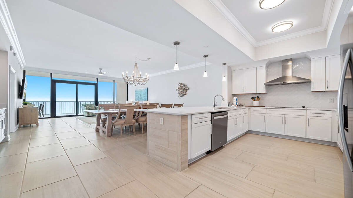 Amenities are abundant at this Phoenix Gulf Shores II condo: the unit is appointed with full-size appliances, wet bar with ice maker, 75” flat screen SMART TV in living room and a flat screen 65" SMART TV in the master, and a 55" Smart TV in the 2nd and 3rd bedrooms, laundry room with full size washer and dryer. There is a King bed in the master, a King in the 2nd bedroom, two Twin over Queen bunk beds in the 3rd bedroom, and a queen sized sleeper sofa for sleeping up to 12.
