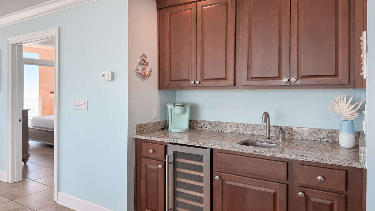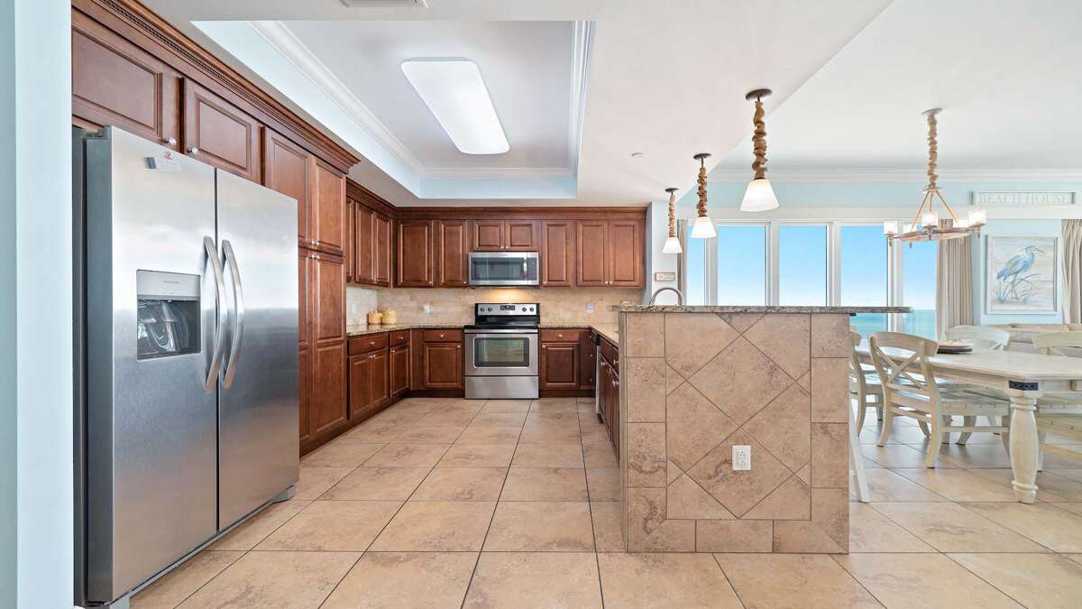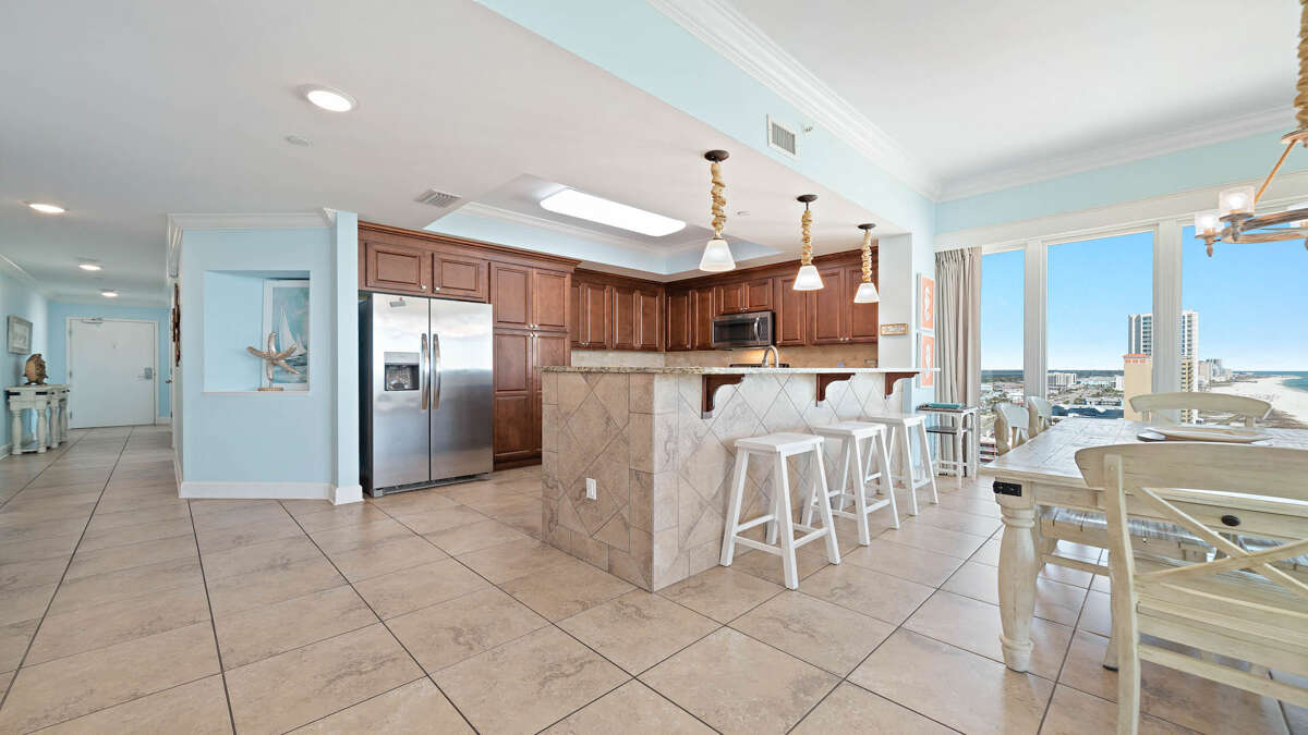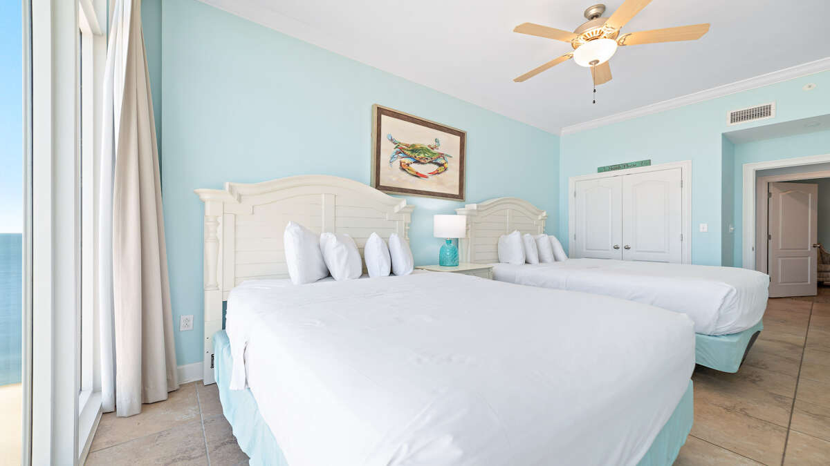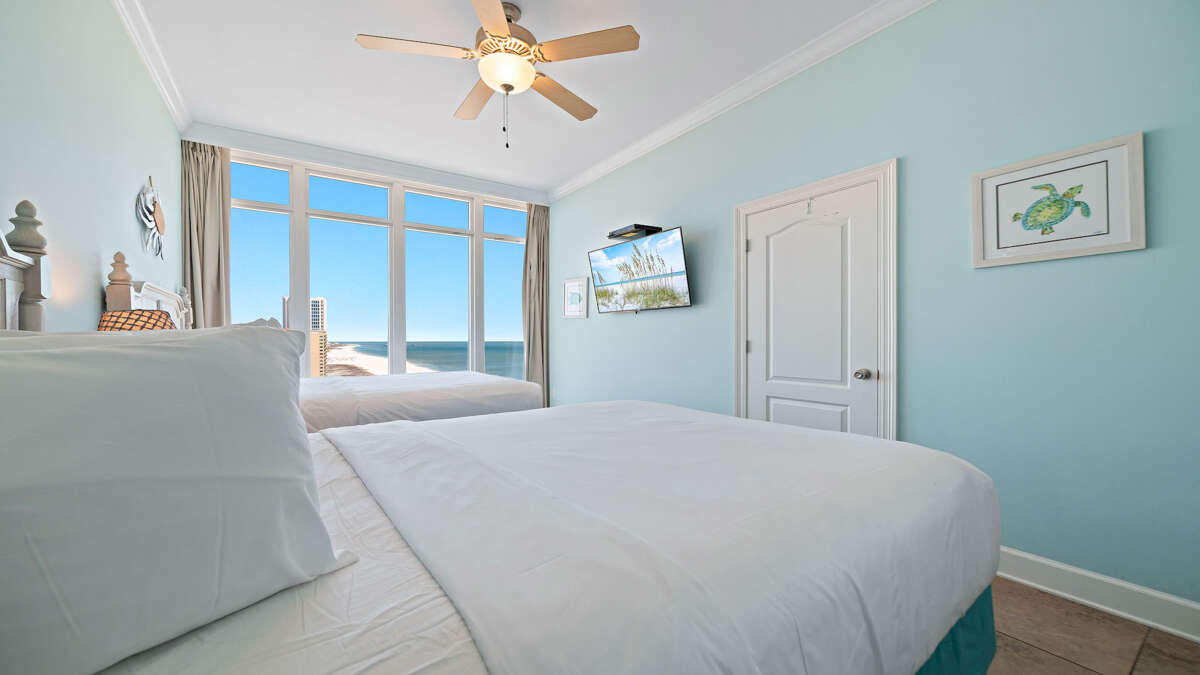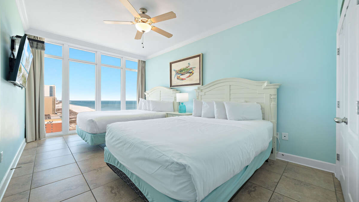 Amenities are abundant at this Phoenix Gulf Shores condo: the unit is appointed with full-size appliances, wet bar with ice maker, 65” flat screen HDTV in living room and a flat screen 55" HDTVs in the master and 2nd bedroom and 50" HDTVs in the 3rd and 4th bedrooms, laundry room with full size washer and dryer. There is a King bed in the Master, two Queen beds in the 2nd bedroom, a King in the 3rd bedroom, two Queen beds in the 4th bedroom along with a sofa sleeper in the living room for sleeping up to 14.