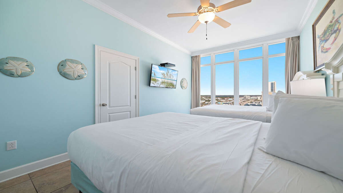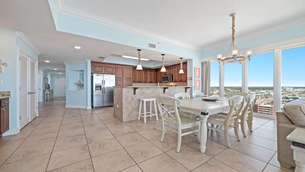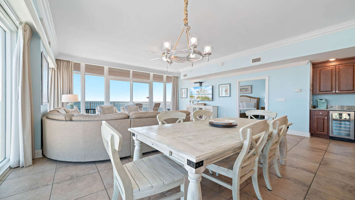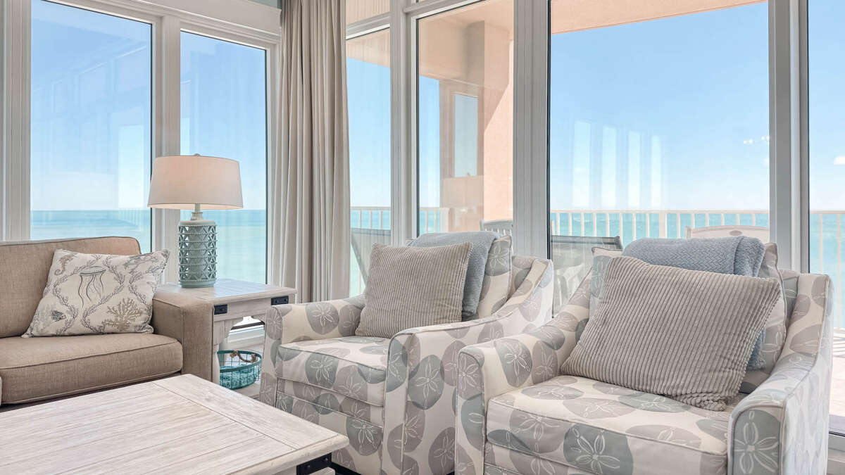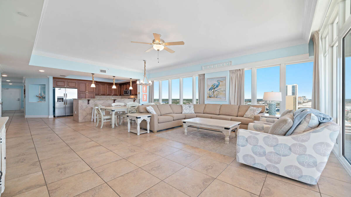 Corner 14th-floor condo rental with Gulf views from balcony and floor-to-ceiling windows in Orange Beach, a spacious place to stay for up to 14.
