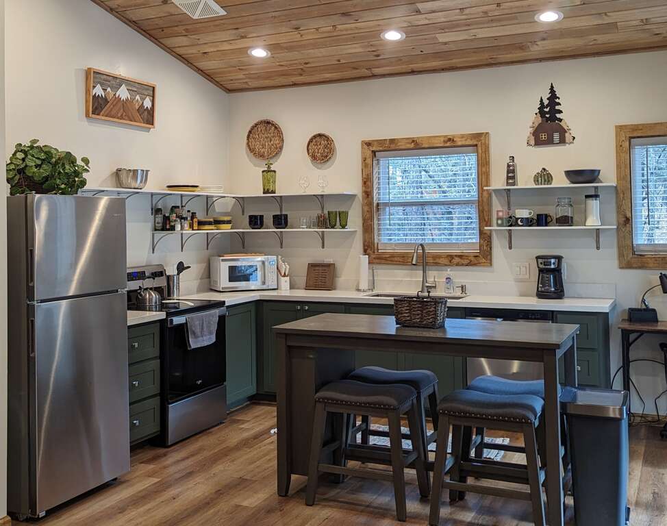 Right across the street is the Hillside Hangout—a 3-bedroom, 2-bath home that’s also available to reserve if you’re traveling with a larger group.