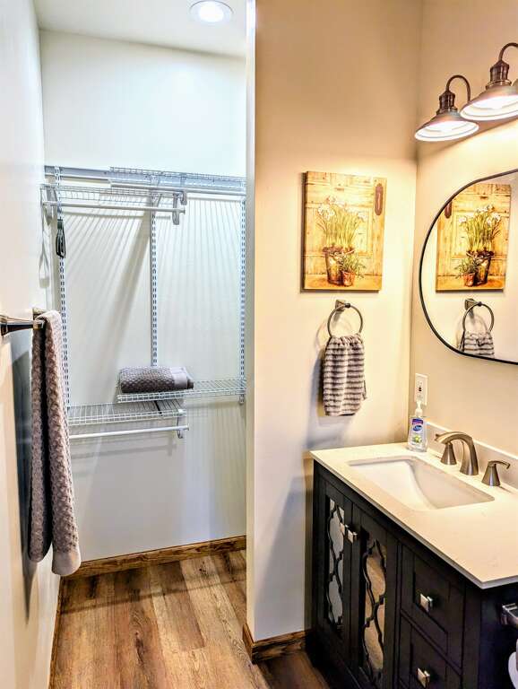 The master suite boasts a king bed and walk-in shower, while the second bedroom offers a twin-over-full bunk and an additional twin bed, comfortably sleeping up to four guests. The open-concept great room combines the kitchen, dining, and living areas for easy gathering.