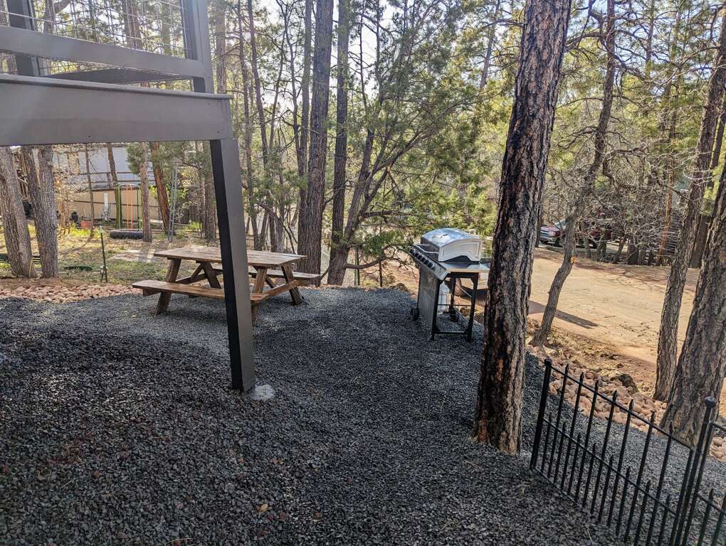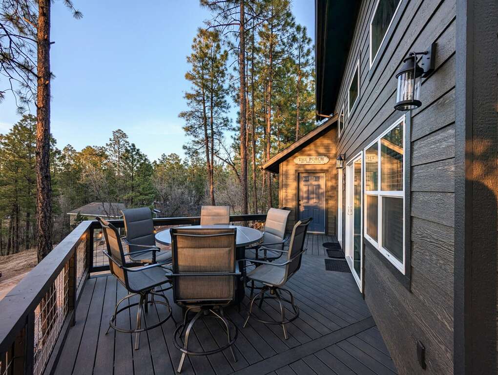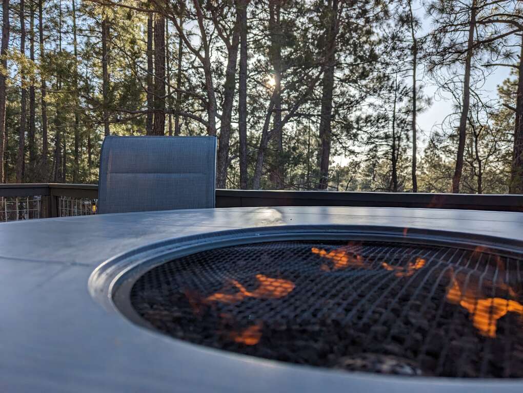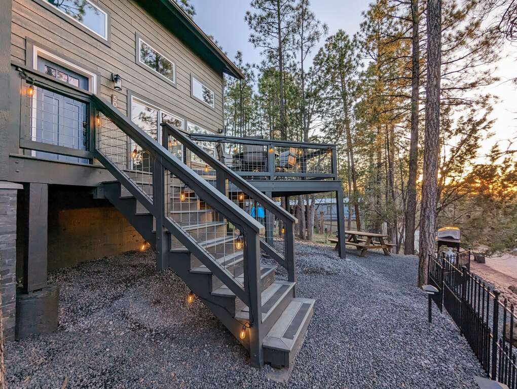 Discover comfort and tranquility in our newly built (2023) 3-bedroom, 2-bath home perched on a scenic hillside. Enjoy breathtaking views of towering pines and stunning evening sunsets from the elevated deck — the perfect spot to unwind around our spacious 6-seat fire pit table.