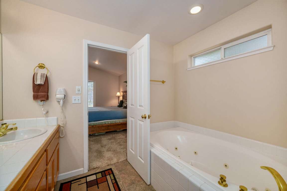 Primary Suite with Cal King bed, full bath (separate jetted tub and shower)