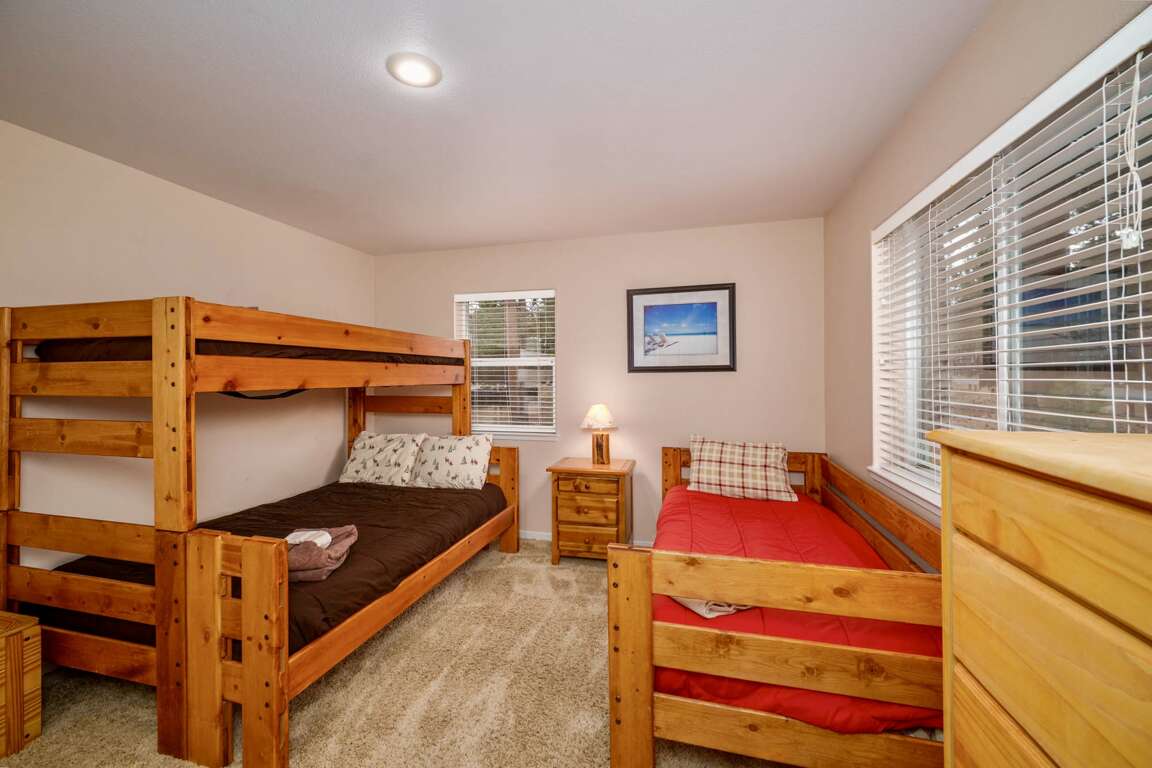 Bedroom 2 with a bunk bed (double down, single above) and a separate twin bed