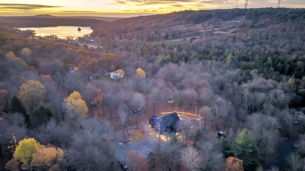 Poseidon, your preferred place to stay in Lake Harmony, PA offers a stunning ocean view. This 9-bedroom cabin comes complete with a hot tub, pool, and other amenities.