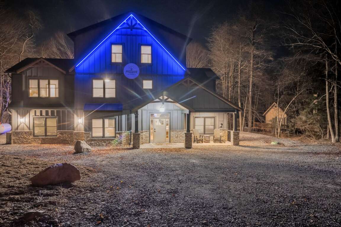 Discover the ultimate group getaway at Poseidon, a newly built 9-bedroom, 7-bathroom luxury home in Lake Harmony Estates that sleeps 30 and features a game room, 10 foot x 20 foot indoor pool, hot tub, sauna, and multiple gathering spaces. Perfectly positioned between Big Boulder Lake and Lake Harmony, this spacious Pocono cabin rental is an idyllic year-round retreat for family reunions and friends’ getaways.