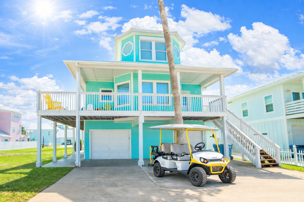 Welcome to Turquoise Treasure! With 2,200 square feet of upscale living space spread over three floors, this cheerful 4BR/3.5BA home is the ideal gulf-side vacation home. Located in the sought-after Port Aransas neighborhood called Royal Sands and is just steps away from the golf cart accessible community boardwalk! Soak this up with your very own 6-seater golf cart, which is included with the rental! Enjoy the tropical vibe created by a fun color palette and beachy décor, and soak in the sun on the spacious wraparound deck. Don't forget to bring your furry friends! Turquoise Treasure is pet-friendly! As a part of the desirable Royal Sands community, enjoy access to three shared pools and a hot tub! If traveling with a larger group, consider renting one of the many other Royal Sands homes managed by Port A Beach House for additional space. </span><br />