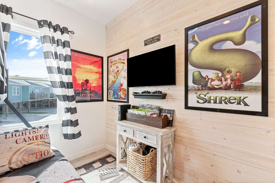 Welcome to Cinema Shores, where the magic of the movies meets the beauty of the beach! This 3-bedroom, 2.5-bathroom vacation home sits on a spacious corner lot and boasts the largest front porch in the subdivision, offering breathtaking ocean views. Step inside and be transported into a cinematic retreat, where classic movie décor blends seamlessly with coastal charm. The children’s room is a dream for young gamers and movie lovers, featuring an Xbox with tons of games and a collection of movies for endless entertainment. Outside, gather around the fire pit for a cozy evening, challenge friends to a round of corn hole or washers, and enjoy fresh, buttery popcorn from the popcorn machine—just like at the theater! <br />