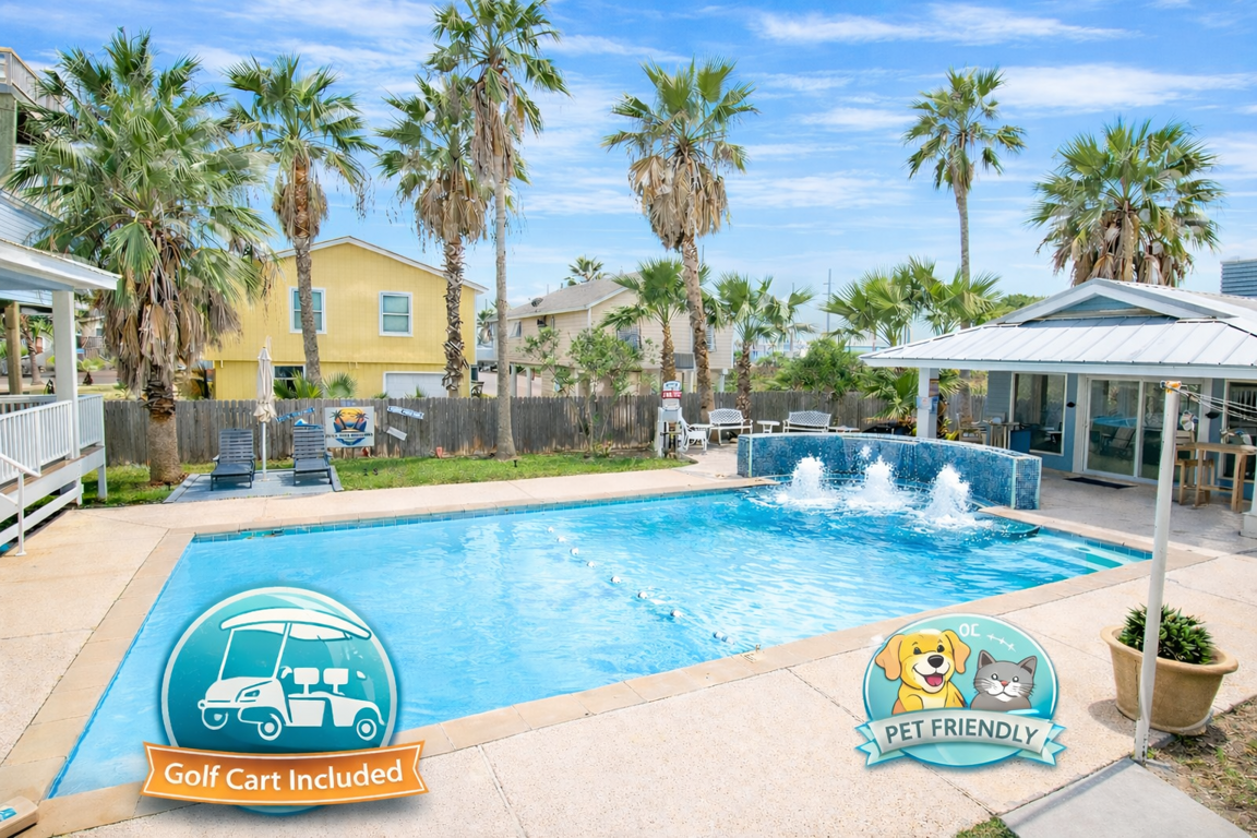 A serene 6 bedroom house located in beautiful Port Aransas, TX. High Tide Hideaway is your go-to vacation rental offering a private pool and golf cart for fun outdoor activities.