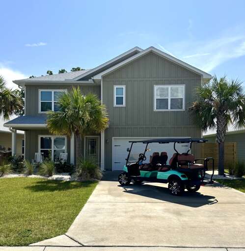 If you're looking for a vacation rental that offers both relaxation and entertainment, look no further than Rest Ashored in Windmark Beach, Florida. Windmark Beach is an active coastal community with plenty of amenities to keep you occupied during your stay.One of the biggest advantages of staying in Windmark Beach is the zero-entry community resort-style pool. Whether you're traveling with kids or just want to relax in the water, the pool is the perfect place to cool off on a hot day. And if you're looking for more water activities, take advantage of the beach gear rental credit and choose from kayaks, bicycles, and paddleboards so you can explore the beautiful Gulf Coast at your own pace.But Windmark Beach isn't just about the water - there are plenty of other activities to keep you entertained as well. Local restaurants like Brunos Pizza and The View offer delicious cuisine, and Wave Aesthetics is the perfect place to pamper yourself and unwind. And if you're looking for a social scene, The Mill Mercantile and Social offers drinks and live music, so you can let loose and enjoy the company of other vacationers. For younger travelers, The Mill also offers a Sweet Shop, and Sunrise Cafe serves up some of the best waffles around.Rest Ashored is a five-bedroom rental home that is perfect for those looking to relax and unwind in style. With sleeping room for 15 guests, this spacious house is perfect for large families or groups of friends.The house features a ground floor living area complete with a fully equipped kitchen and a dining area that seats 12. There's a separate den for those who want to curl up with a book next to an electric fireplace and a ground floor bedroom for those who prefer not to climb stairs. There's also an enclosed garage with a golf cart, ping pong table, and foosball table for those who want to have fun indoors.Upstairs, you'll find the remaining four bedrooms, including a bunk room that sleeps five. There's also a second den upstairs, complete with a daybed, trundle, TV, and Xbox, perfect for the kids or those who want to watch a movie or play a game.Outside, you can relax on the small covered porches at the front and back of the house. And when you're ready for some fun in the sun, the beach is just a short walk away.Overall, Rest Ashored in Windmark Beach is the perfect vacation rental for anyone looking for a fun and relaxing getaway. With so many activities to choose from, you'll never be bored during your stay. So why wait? Book your stay today and get ready to enjoy all that Windmark Beach has to offer!**Pet Friendly, max quantity, type, and additional fees do apply***This neighborhood does not allow boats or trailers overnight or in the driveway. Please plan accordingly.* **No Boat/Trailer Parking Allowed**