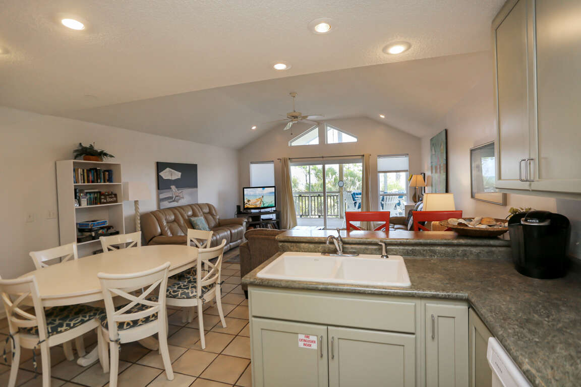 1st Level: On this level, you will find a full bathroom, a dining area, a kitchen, and an open living area with a TV, DVD, VCR, and a twin sleeper sofa. The highlight of this level is the fabulous gulf front, furnished, screened porch, offering breathtaking beachfront views.