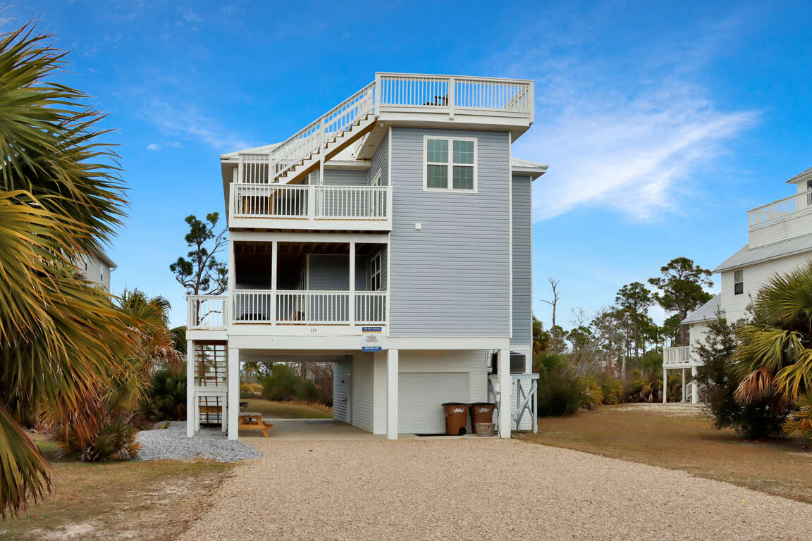 Top Reasons to Book this Gorgeous Home:* 750 Steps to St. Joe Bay Access*Deeded beach access across the street, easy walk!*Awesome family entertainment including: cornhole, ping pong table and an arcade basketball game* Across the Street from Longbills restaurant on Cape San Blas* 2 Covered Decks and 1 Rooftop Deck with Gulf and Bay Views* Pet Friendly, One Dog Welcome* 3 Miles to State Park* Professionally Managed; 24/7 Service*This property is not available to adults under the age of 25*We LOVE Snowbirds! Low Monthly Winter Rates**This home allows a maximum of 4 vehicles to park in drivewayWelcome to The Blue Pelican, your perfect seaside escape on Cape San Blas's bayside. This stunning 5-bedroom, 3.5-bathroom beach home comfortably accommodates up to 12 guests and is also pet-friendly. Enjoy the outdoors in the spacious backyard and covered area under the house, which features an outdoor shower and a picnic table. The two levels of covered decks offer beautiful views of the Gulf and Bay, along with a rooftop deck for panoramic vistas. With luxurious outdoor furniture, including an oversized swing, you may find it hard to leave one of the two decks.Inside, you can unwind in four luxurious bedrooms, each with a king bed, and a fifth bedroom with two bunk beds. The top-floor sanctuary includes a well-equipped kitchen, a living room with beach views, and a stylish dining area. The master bedroom is a private oasis, complete with a soaking tub and a separate shower. Experience a thoughtfully curated vacation rental where every detail enhances your enjoyment, and let the Gulf beckon you for an unforgettable stay.Nestled along Florida's Forgotten Coast, the north end of Cape San Blas offers a serene escape for nature lovers and beach enthusiasts alike. This pristine stretch of coastline is renowned for its unspoiled white sandy beaches, crystal-clear turquoise waters, and breathtaking sunsets that paint the sky with vibrant hues. Visitors can enjoy a variety of outdoor activities, including shelling, fishing, and kayaking, or simply relax while soaking in the tranquil beauty of the area. With its pet-friendly beaches and laid-back atmosphere, Cape San Blas invites travelers to experience a slice of paradise away from the hustle and bustle of everyday life. Whether you're seeking adventure or quiet reflection, the north end of Cape San Blas promises a memorable getaway.The Bed Set up:First Level:Guest Bedroom: King BedGuest Bedroom: King BedroomGuest Bedroom: King BedroomBunk Room: Two Twin Bunk SetsSecond Level:Master Bedroom: King BedArea Attractions:Just across the street, Longbill's Restaurant offers a delightful dining experience with a charming coastal ambiance. Known for its fresh seafood and locally sourced ingredients, the restaurant serves up a diverse menu that caters to both traditional and adventurous palates. From succulent grilled shrimp to savory crab cakes, each dish is crafted with care and creativity. The welcoming atmosphere, coupled with stunning views of the Gulf of Mexico, makes Longbill's a perfect spot for both casual meals and special occasions. Whether you're a local or a visitor, Longbill's promises a memorable culinary journey infused with the essence of the sea.Adventure awaits just 3 miles away at St. Joseph Peninsula State Park. A daily pass costs $6, granting access to the park and its facilities. You can choose from three hiking trails that showcase the native wildlife of Florida. Additionally, the park offers a boat ramp for launching into St. Joseph Bay, and kayaks and paddleboards are available for rent. This park is a true gem, featuring pristine, untouched white sandy beaches.Explore the natural beauty of Cape San Blas by embarking on a journey along the Loggerhead Trail. This picturesque trail stretches for approximately 8.7 miles, offering a unique opportunity for outdoor enthusiasts to experience the pristine landscapes of the Florida Panhandle. And you can jump on the trail right in front of the house. Ideal for walking, jogging, or biking, the trail weaves through lush coastal vegetation, providing glimpses of the area's diverse wildlife and stunning scenery.CHECK IN IS AT 4PM. No exceptions at this time.