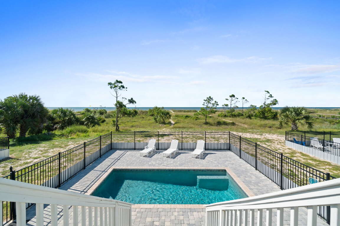 Located on C-30A between Port St. Joe and Indian Pass, A License To Chill invites you to relax, recharge, and enjoy the beauty of the Gulf in a 4-bedroom, 3-bath beachfront retreat. Perfectly positioned and Gulf-front, this inviting home combines comfort, coastal charm, and easy beach access for a truly memorable getaway.The main level features an open living area filled with natural light and Gulf views, creating a welcoming space to gather and unwind. A well-stocked kitchen and dining area make meals easy and enjoyable. This level also features a king bedroom with a private en-suite bathroom, along with an additional queen bedroom and a full hallway bath.The upper level offers two additional bedrooms that provide a quiet place to unwind at the end of the day. One bedroom features a queen bed, while the other is set up with a pair of twin bunks. A full bathroom on this level serves both rooms.Step outside to enjoy your morning coffee and watch the sunrise from the Gulf-view deck, rinse off in the outdoor shower after beach time, cool down in the private pool, or head straight to the water using the shared beach access just steps from the home.**Pet Friendly, max quantity and additional fees do apply**