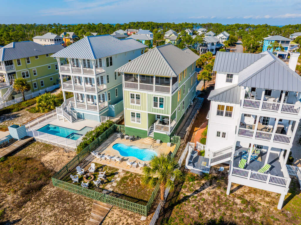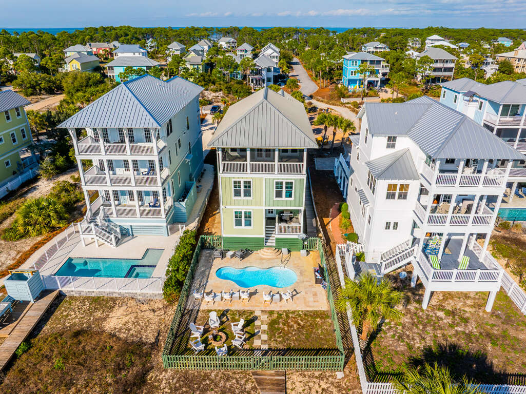 Immerse in the unique blend of luxury and comfort at Southern Charm, an oceanfront vacation rental in Cape San Blas, FL equipped with A/C, private pool, community pool, and internet access.