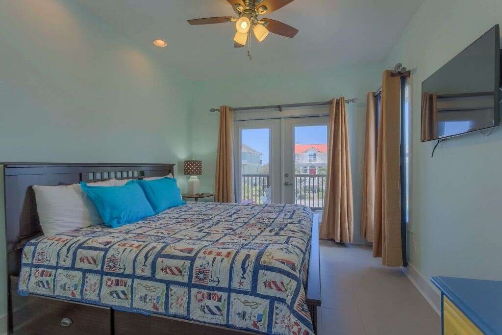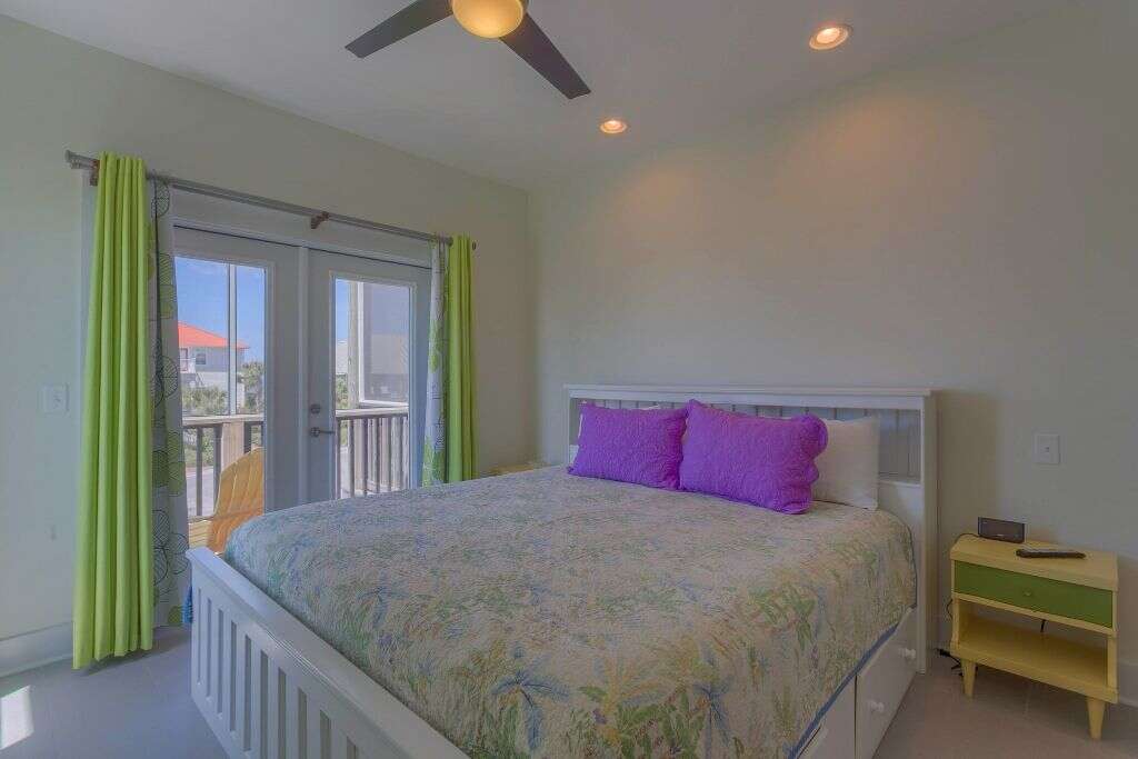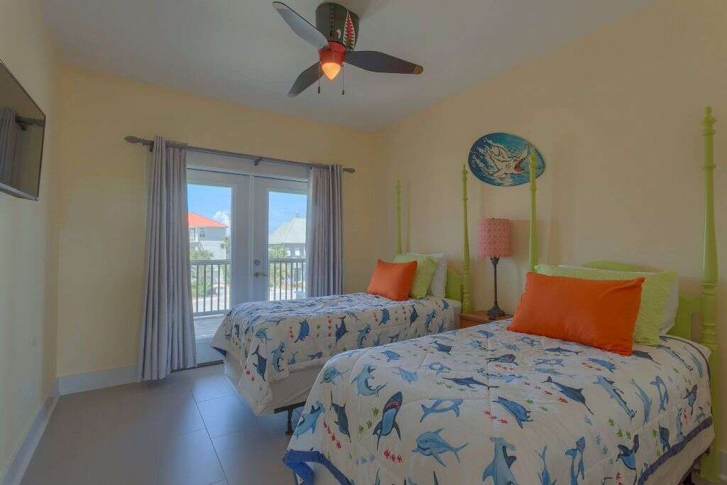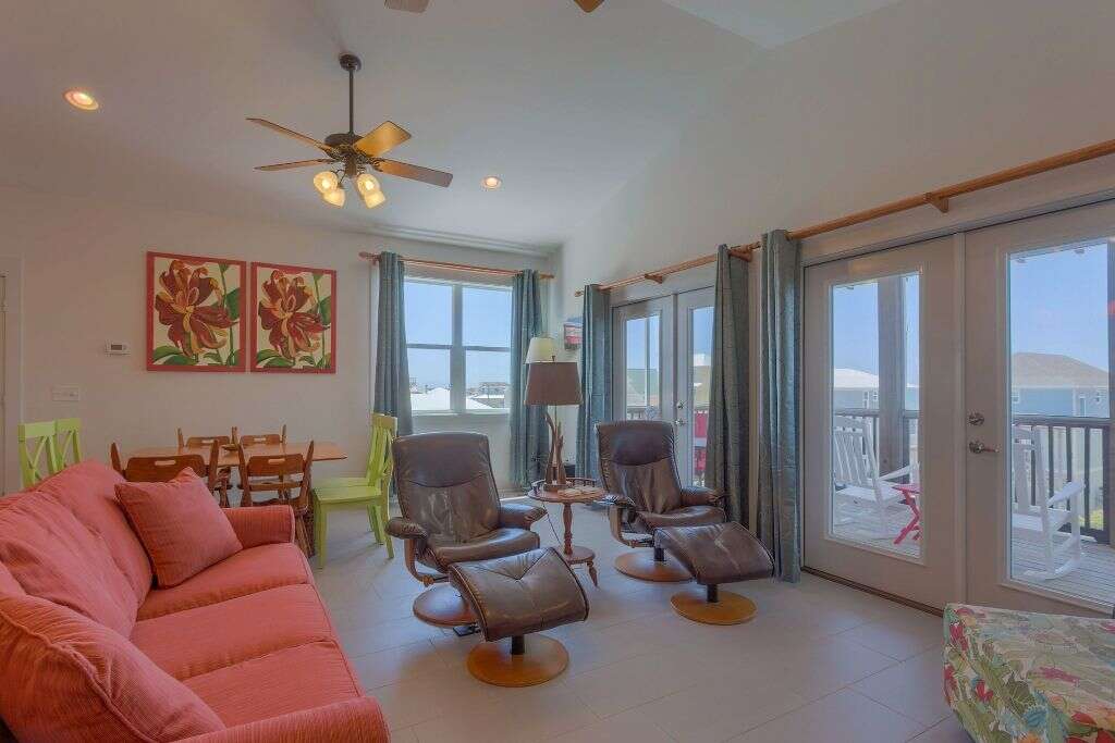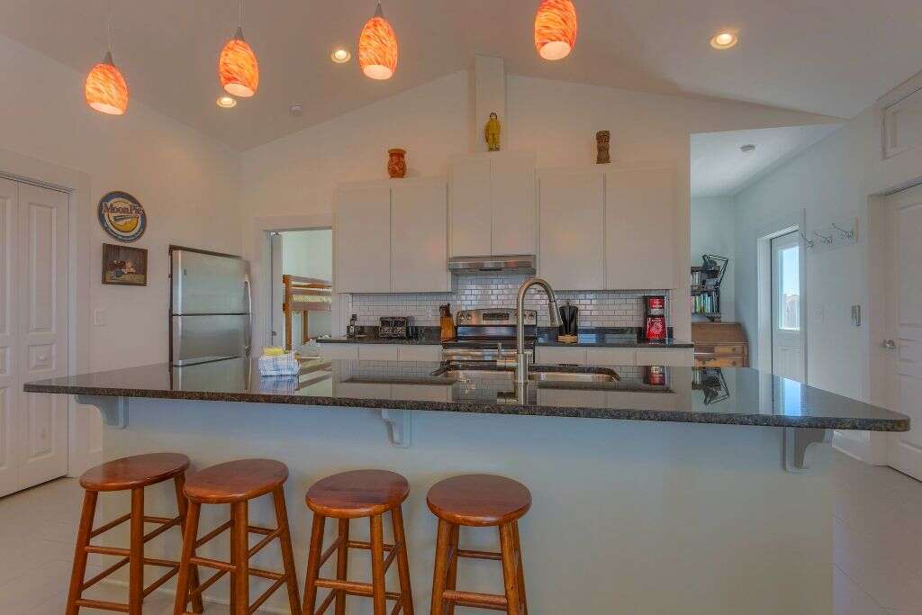 BooTiki House is a unique property on Cape San Blas that should be first on your list when considering a 4 bedroom vacation home. This place has it all and is truly a must-see. To start with lets talk location, thats always first on everyones list. This single family home is about mid-way down the Cape San Blas peninsula and sits 1st tier on a quiet cul-de-sac just steps from the shore. The next item on most must-have lists is a pool and youve got it, a private pool with a screened porch just beyond that that has a flat screen tv. Also outside is a grilling area with a table and a Parkside grill as well as an enclosed outdoor shower all of which is fenced in - great for the kids (two legged or four legged).We have the location and pool covered and since Cape San Blas has been ranked among the highest pet friendly beaches, of course most like bringing their dogs along to experience the beach too. Good thing this is also a pet friendly home. Other luxuries that make this home comfortable for everyone is the elevator, ramps at door entries, a barrier-free shower in one of the master baths, screen decks on every level and an open sundeck on the top level perfect for watching the sunrise above St. Joseph Bay, personal reading lights above the beds and easy-close cabinets in the kitchen. The colorful and whimsical dcor will make you feel like youve stepped into beach time. Thats the point right? To escape your every day and get swept away to vacation in paradise. BooTiki House does just that. If youre wondering where the name BooTiki House comes from its named after the owners beloved dog, Boo, who is no longer with them. In his memory, theyve created a non-profit to help families struggling to pay vet bills. A portion of your rent will help fund this charity. This is a win for everyone.Floor plan: Ground level covered, paved parking, screened porch, private pool and foyer. 1st level Bedroom 1 king bed, flat screen TV, small gulf view screened deck and full bath with double vanities and a large barrier-free shower; full bath with shower only, Bedroom 2 2 twin beds, flat screen TV, gulf view screened deck; laundry room and Bedroom 3 king bed, flat screen TV, gulf view screened deck and full bath with shower/tub combo. 2nd level living room with sleeper sofa, TV, 2 leather recliners and gulf view screened deck with outdoor dining; an open kitchen that overlooks living room with stainless appliances and easy-close cabinets; dining area, full bath with shower only and Bedroom 4 very small bunk room off the kitchen with a set of bunk beds and flat screen TV. There is also an open sundeck at the top of the stairs facing the bay.