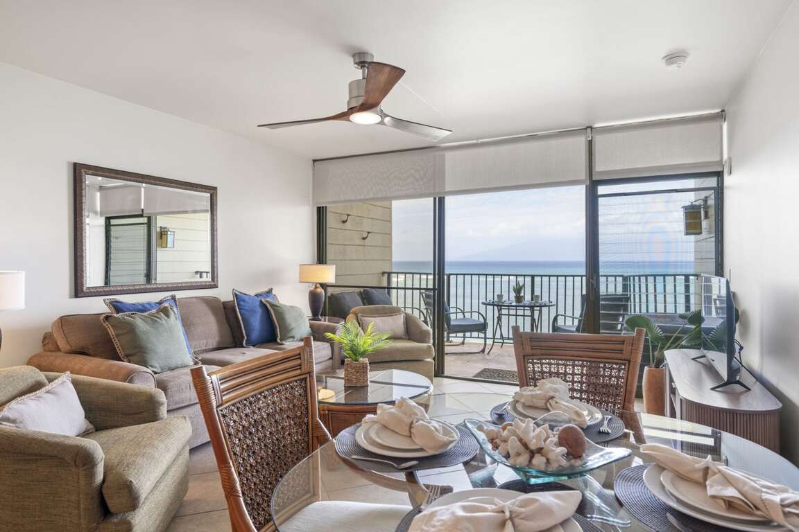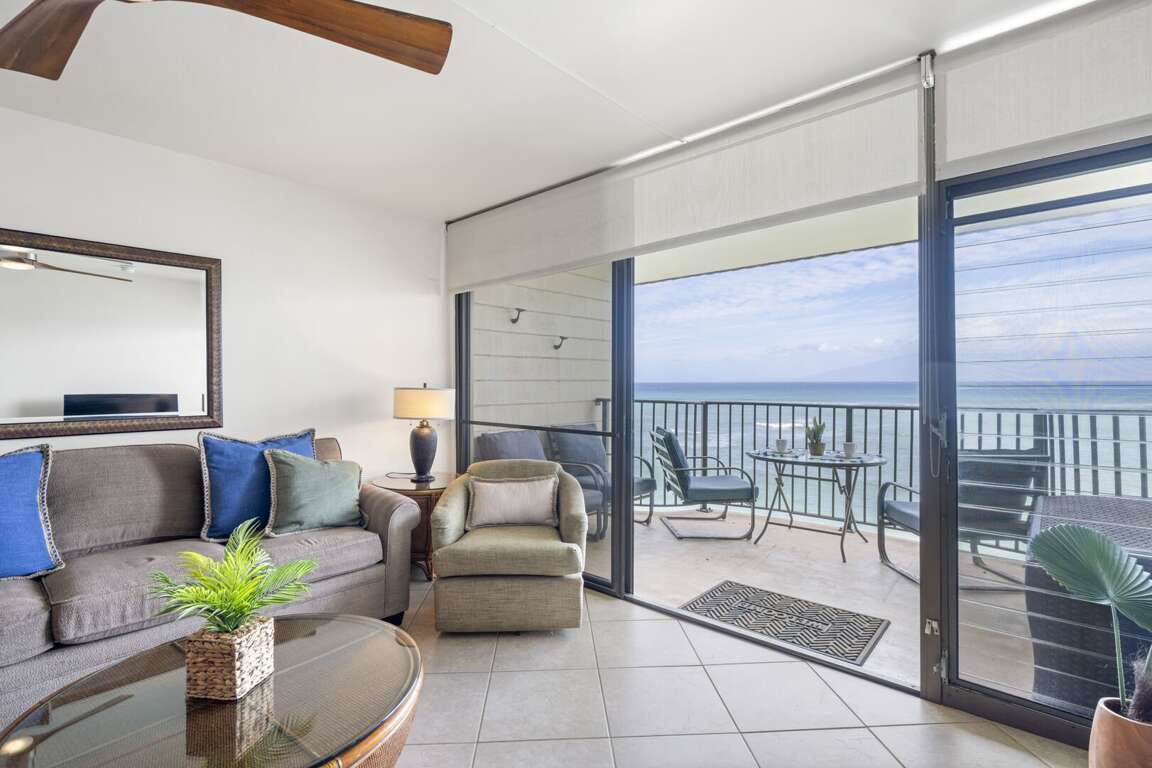 We invite you to experience island living at its finest in our beautiful top-floor, corner condo at Kahana Reef, where the Pacific Ocean stretches endlessly before you. Just steps from the shoreline, this quiet four-story oceanfront retreat offers a front-row seat to Maui’s most captivating scenery—panoramic views of the neighboring islands of Lāna‘i and Moloka‘i, glistening sunsets, and the soothing rhythm of the waves. Located only ten minutes south of Kapalua, Kahana Reef is a serene hideaway perfectly suited for relaxation and rejuvenation. <br />
