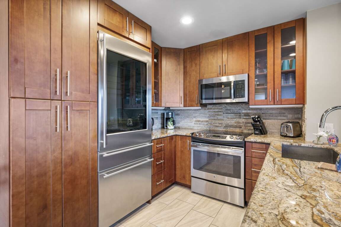 Step inside and feel instantly at ease in a space that’s been thoughtfully designed with island sophistication. The open-concept layout is adorned with contemporary furnishings, warm wood cabinetry, granite countertops, and a mix of tile and hardwood flooring that reflects the natural beauty of Maui. The spa-inspired bathroom is a standout feature, offering a large walk-in tiled shower, dual vanities with granite counters, oversized mirrors, and a private water closet—perfect for couples or families seeking both style and functionality. Whether you're preparing a fresh island breakfast or winding down with a glass of wine on the lanai, every moment here feels like a luxurious escape.<br />