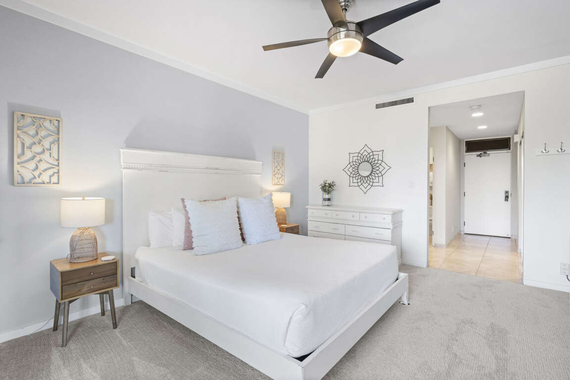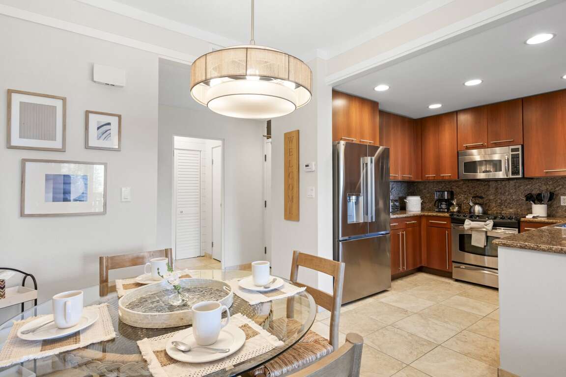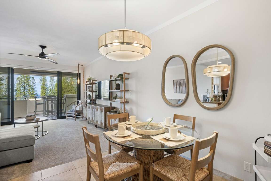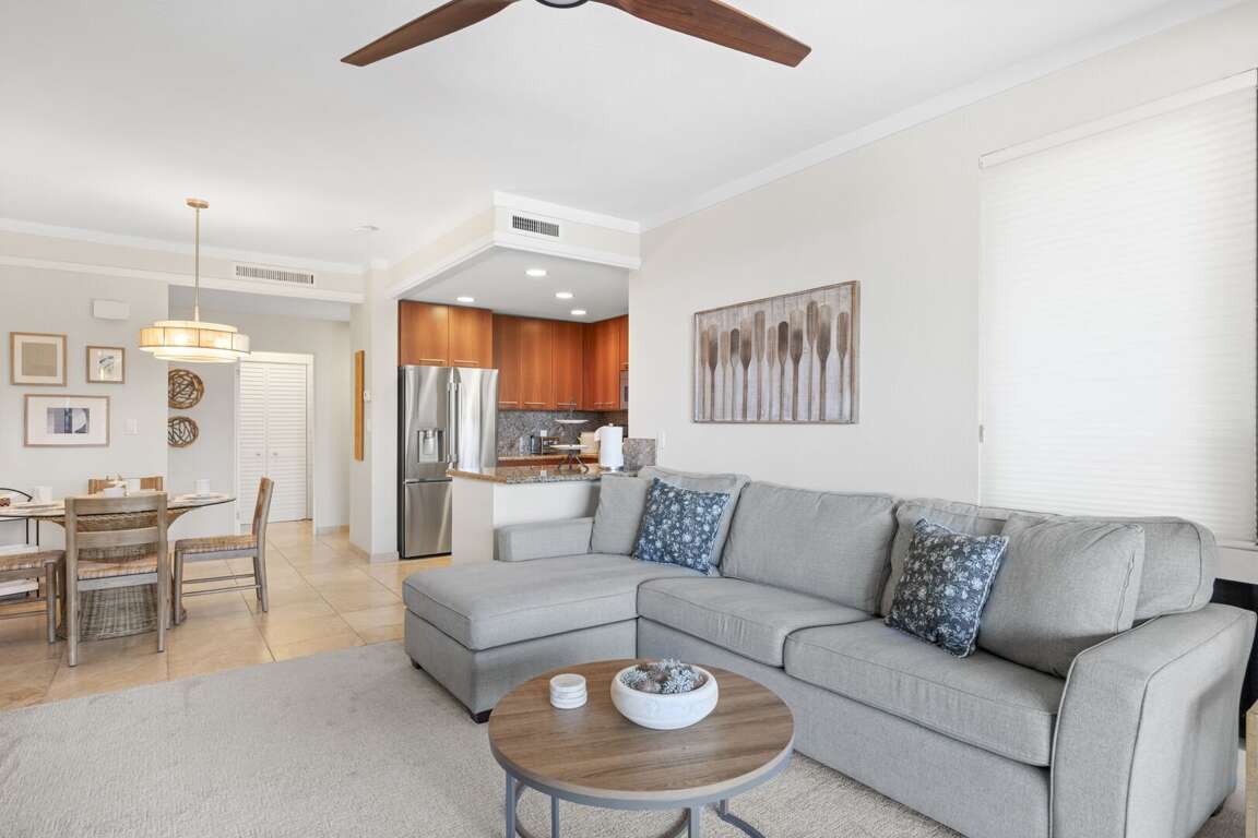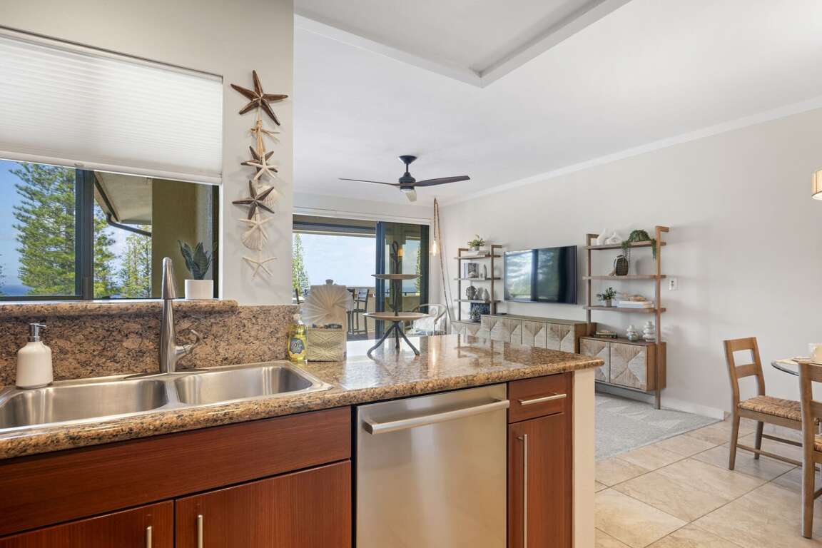 Modern amenities include central air conditioning, sliding glass doors in both the living room and bedroom to invite in the island breeze, a private washer and dryer, and high-speed Wi-Fi for those mixing business with leisure. A dedicated covered parking space is just steps away, ensuring ease of access throughout your stay. Fully refreshed in January 2025, this residence boasts all-new designer furnishings, hand-selected by the owners to create a soothing blend of modern sophistication and tropical warmth. Every detail is tailored for comfort, style, and effortless island living. Step into the chef-inspired kitchen, where granite countertops, custom cabinetry, and stainless steel appliances make preparing meals a delight. The open-concept living area seamlessly flows onto the expansive, partially covered lanai—an ideal setting for sipping your morning coffee, enjoying alfresco meals, or simply soaking in the peaceful ambiance of Kapalua’s iconic golf course and ocean views. <br />