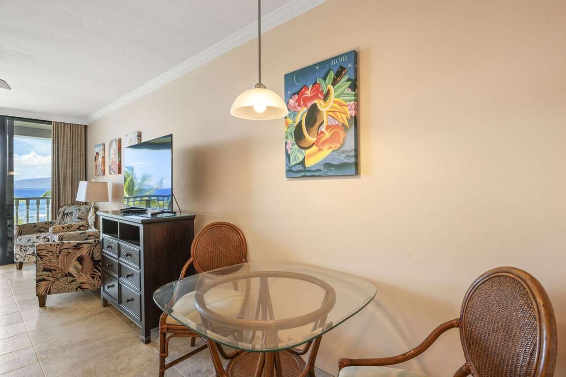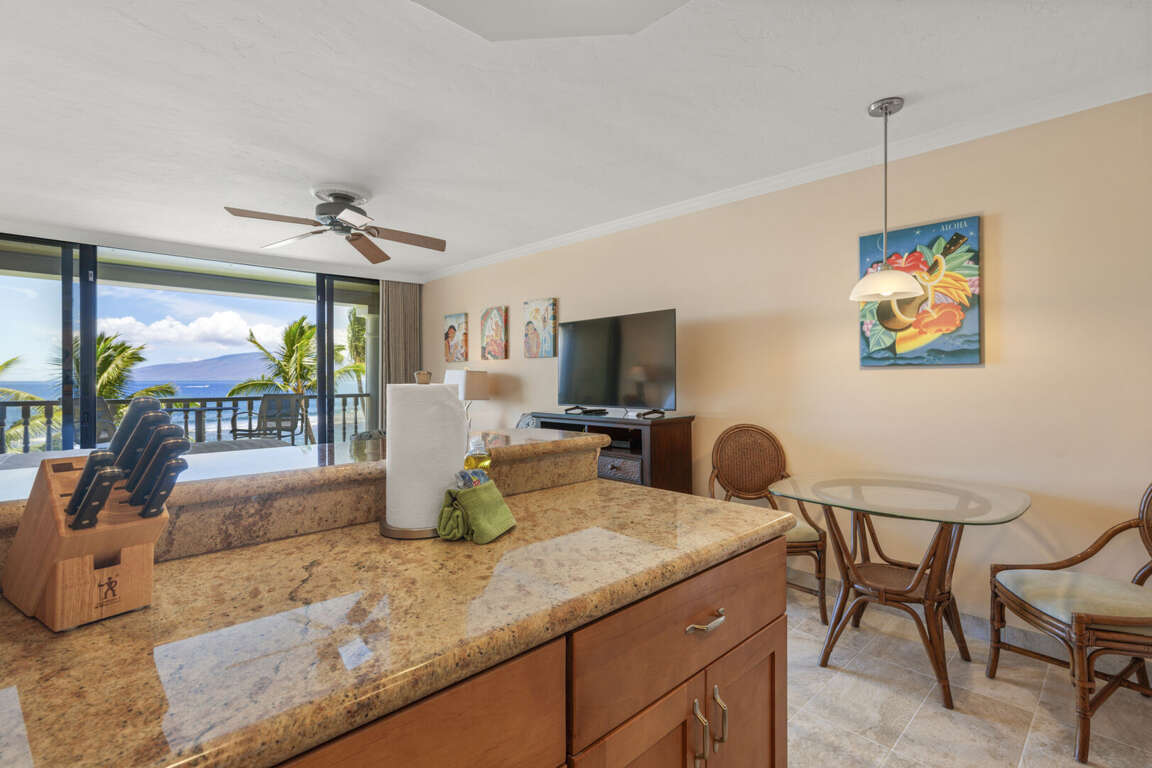 Step outside to your private lanai, where comfortable seating and a railing-height table create the perfect spot for alfresco dining, sunset cocktails, or whale watching in season. The owners, who have cherished this home since 1988, return each year to renew their vows here — a testament to the unit’s romance and serenity.<br />