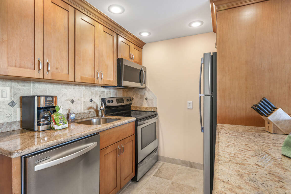 - Full-size stainless steel appliances, including a dishwasher<br />