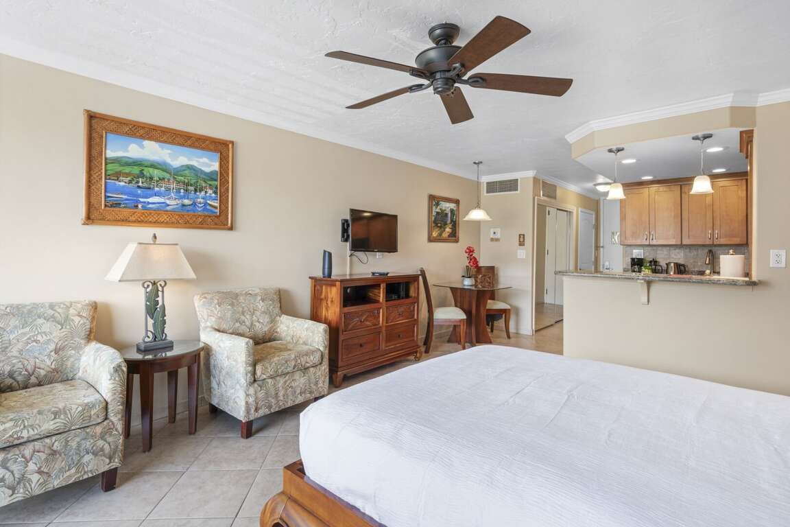 Lahaina Shores is a charming boutique resort located directly on the oceanfront in the heart of historic Lahaina Town. Unit 324 is a 3rd-floor West Maui Mountain view studio offering a comfortable Queen bed, air conditioning, a fully-stocked kitchen, and a smart TV. This is an ideal accommodation for 2 guests. Step onto the private lanai and take in the majestic West Maui Mountains right outside your window — a serene backdrop for your morning coffee or sunset. Inside, enjoy a smart TV with cable, complimentary Wi-Fi, and all the essentials for a relaxing stay. The kitchen is fully equipped for preparing your take on island recipes. Step onto your private lanai to savor the fresh Pacific breeze and West Maui Mountains.<br />