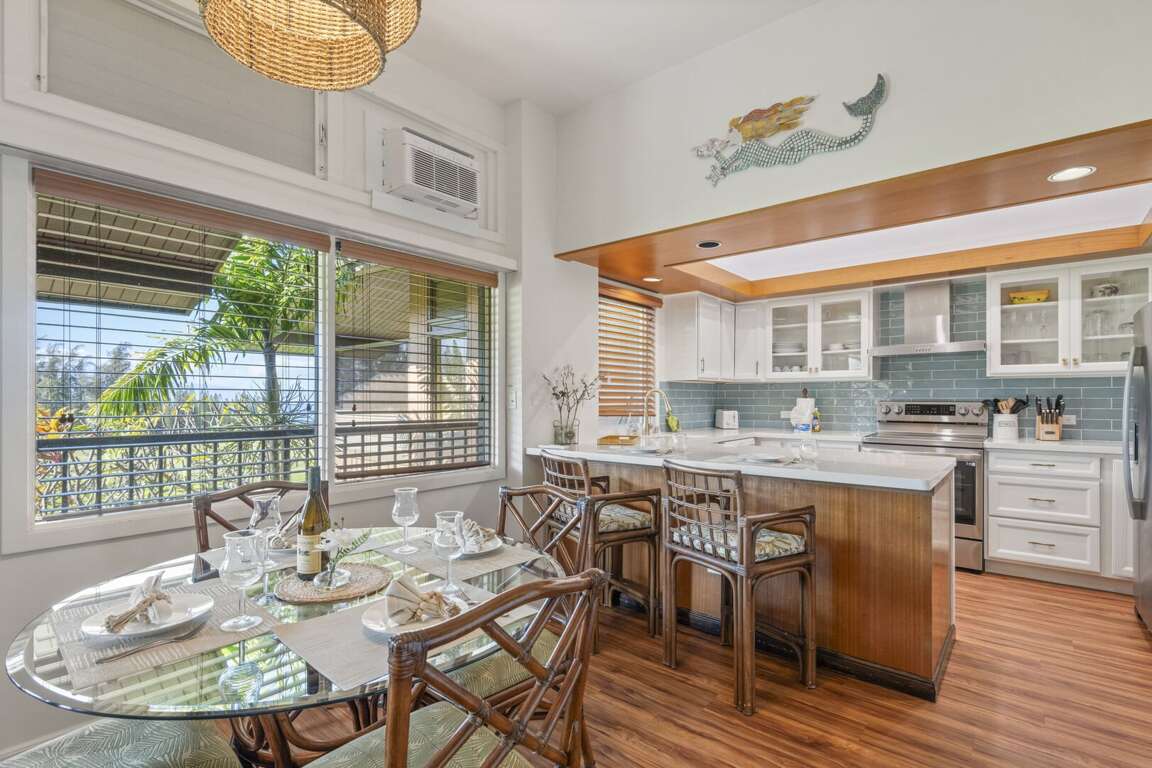 The open living area is designed for both comfort and flexibility, featuring a queen sofa sleeper and plenty of space to lounge. With two full bathrooms, everyone can enjoy added convenience and ease. The fully equipped kitchen makes gathering effortless—whether you’re preparing fresh Hawaiian-inspired dishes or your favorite comfort meals to enjoy at home.<br />