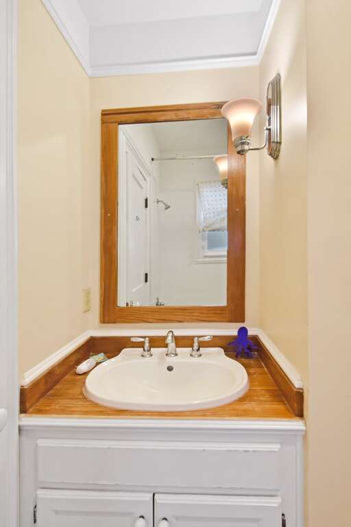 The basement level includes a half-bathroom, a full-bathroom with a tub/shower combo and a single vanity, plus an additional room that has a walk in tile shower.