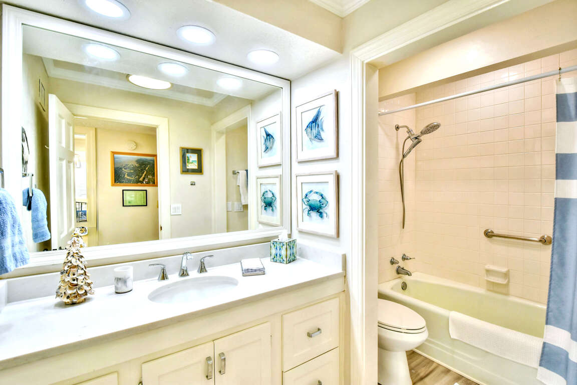 The master bedroom is outfitted with a king sized bed and en-suite bathroom containing a walk-in shower. The TV in the master bedroom is a ROKU TV and live channels are streamed through YouTubeTV. The second bedroom has a king-sized bed. This bedroom is also equipped with a ROKU TV and streaming live channels through YouTube TV. The 2nd bathroom is located just outside this bedroom and has a combination tub/shower.