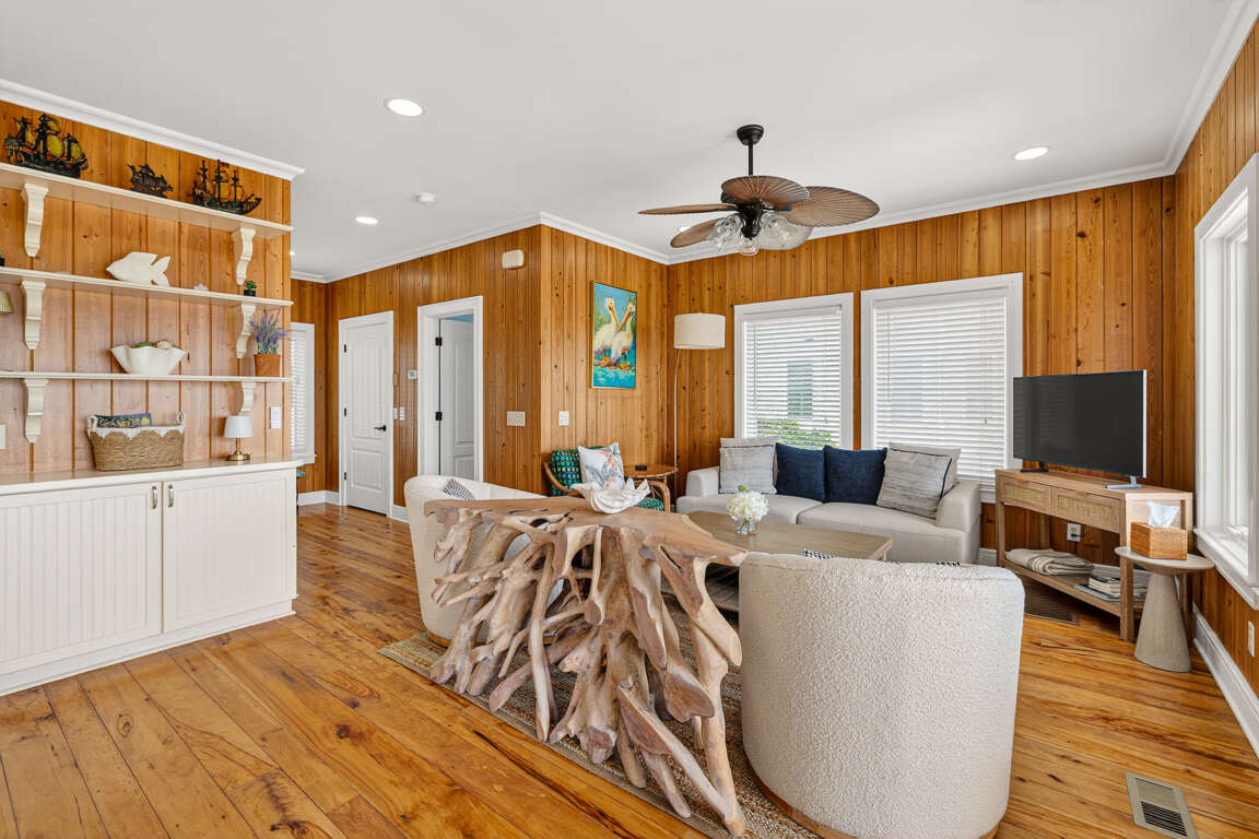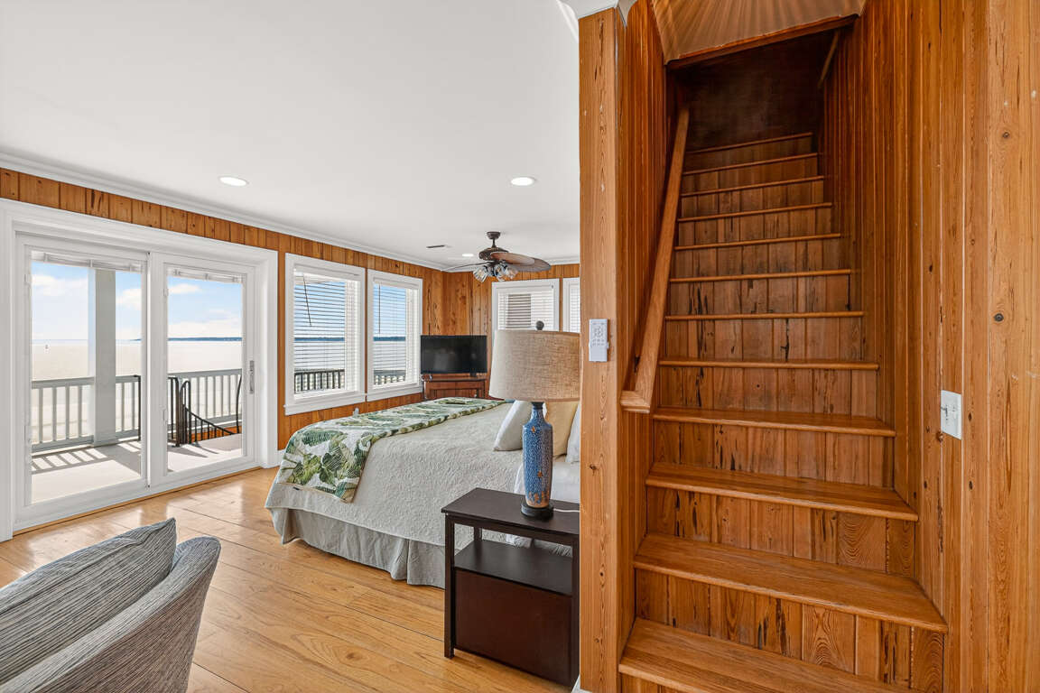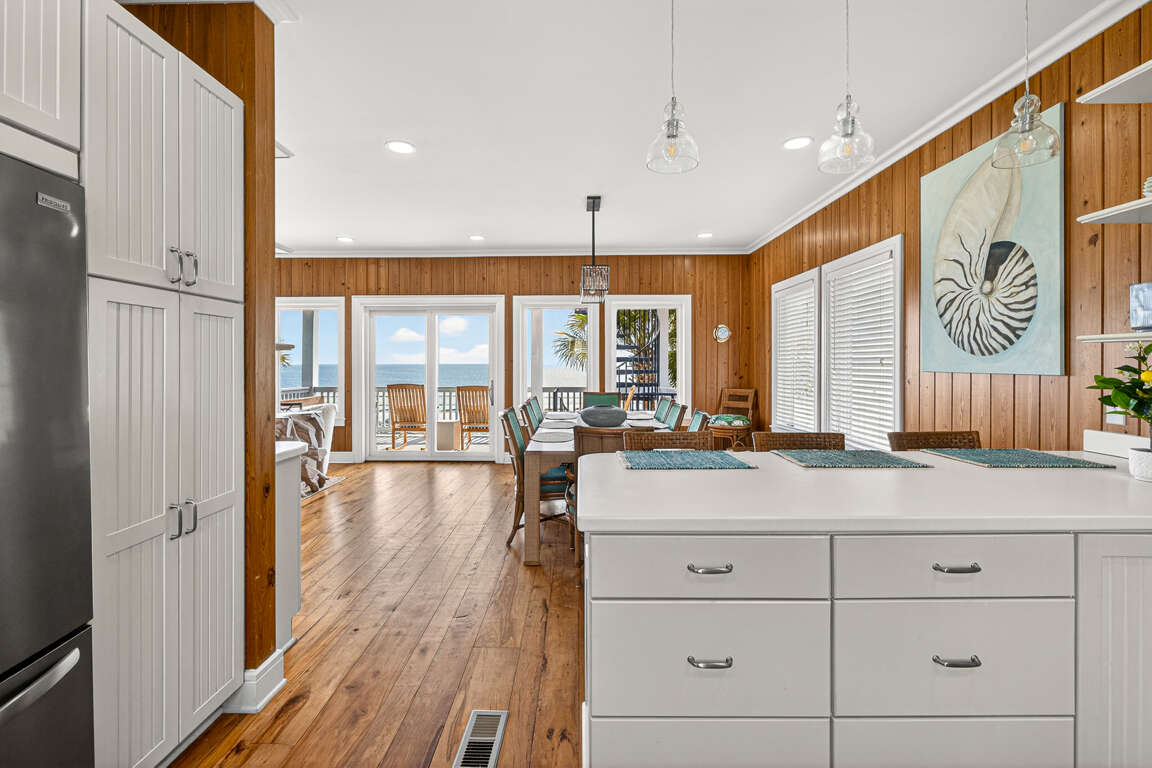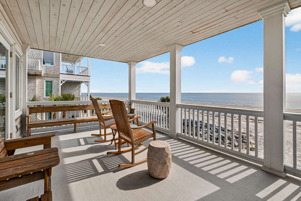The third floor is home to a luxurious master suite, a haven of comfort and style. The king-sized bed faces the Atlantic, offering front-row seats to mesmerizing sunrises. A private kitchenette, a cozy sitting area with a Smart TV, a comfortable futon, and a day bed with a trundle make this level ideal for families or those seeking extra space. Step onto the large oceanfront deck to savor a morning coffee or evening cocktail as the ocean breeze wraps you in tranquility.