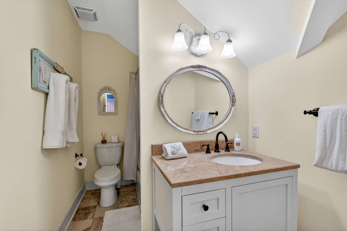 Hallway bathroom (full bath) conveniently serves all three upstairs bedrooms.