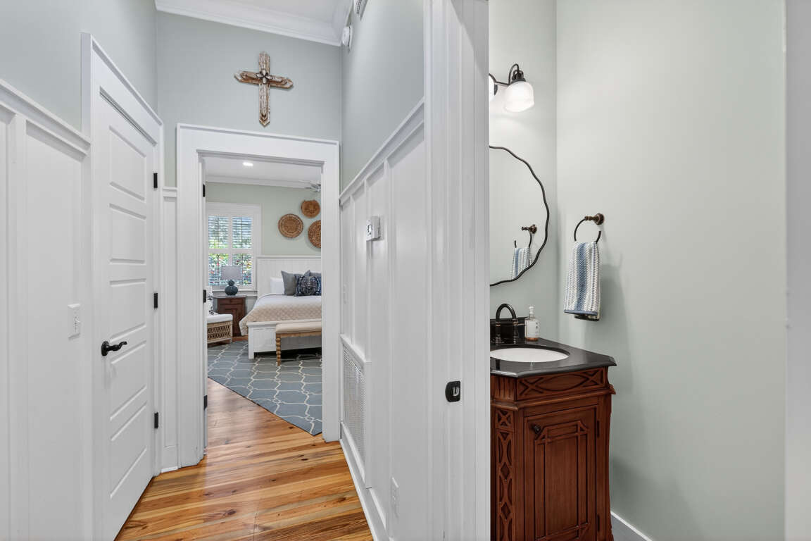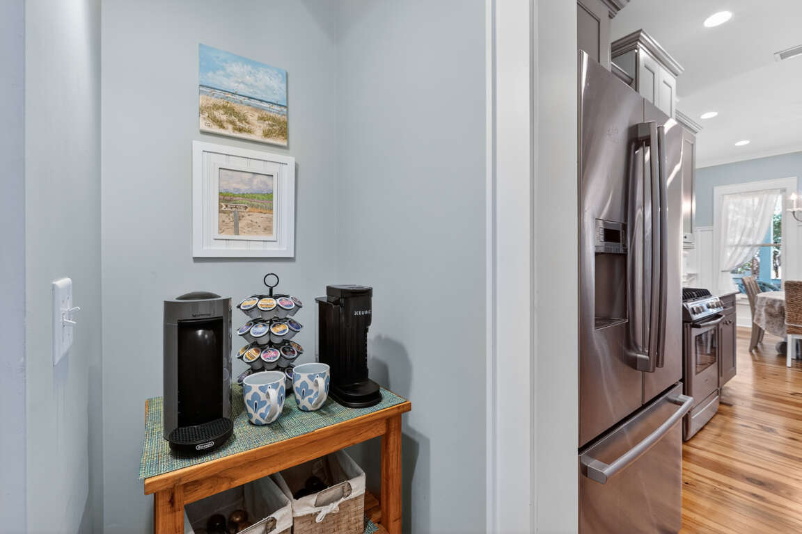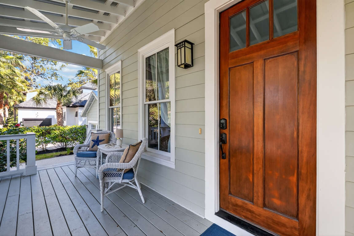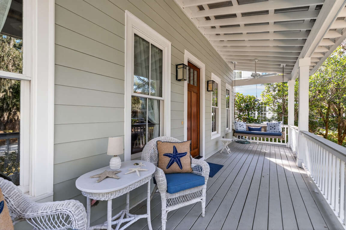 This elegant two-story coastal home offers 4 bedrooms and 2.5 bathrooms, making it an excellent choice for families, small groups, or couples seeking a refined yet comfortable island getaway. The property blends sophisticated decor with practical, vacation-friendly features and an unbeatable location.
