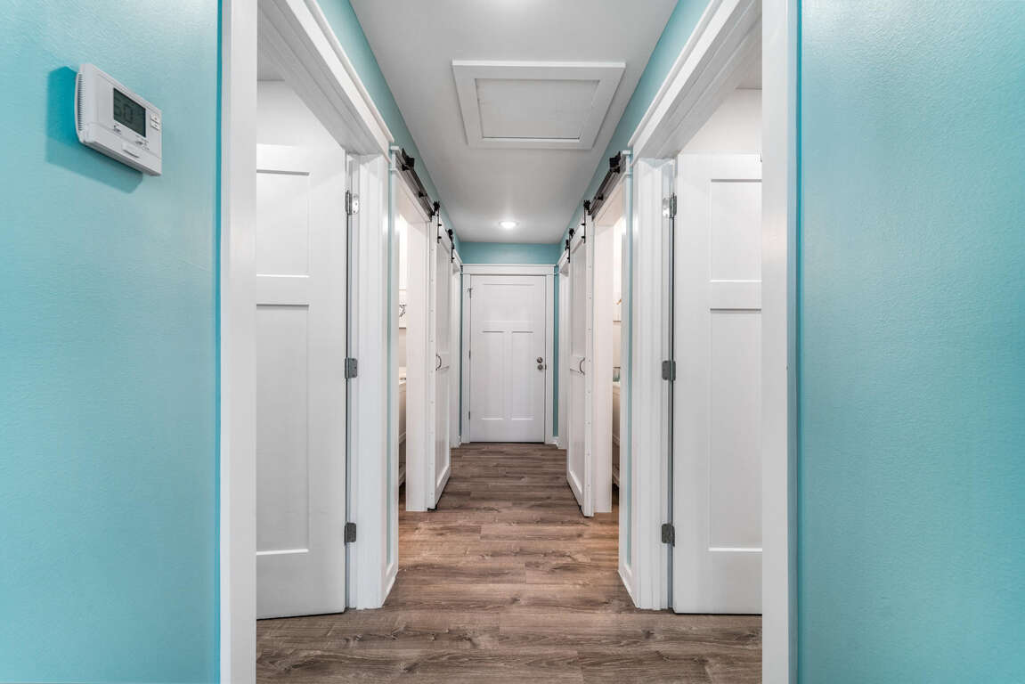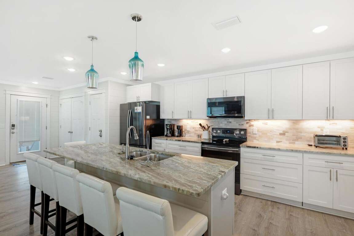 Perched along the stunning Gulf Shores of Alabama, June Breeze beckons guests with its unobstructed gulf views and modern amenities. This vacation home boasts renovated sleeping quarters with flat-screen TVs, providing a cozy retreat after a day of sun and sand. Guests can unwind on the large covered deck, taking in the panoramic Gulf views or enjoy the fully equipped kitchen with granite countertops. The property's unique barn doors in the bathrooms add a touch of charm, while stainless appliances in the kitchen cater to convenience. With each bedroom equipped with a flat-screen television, June Breeze offers a perfect blend of comfort and entertainment against the backdrop of the beautiful Gulf.